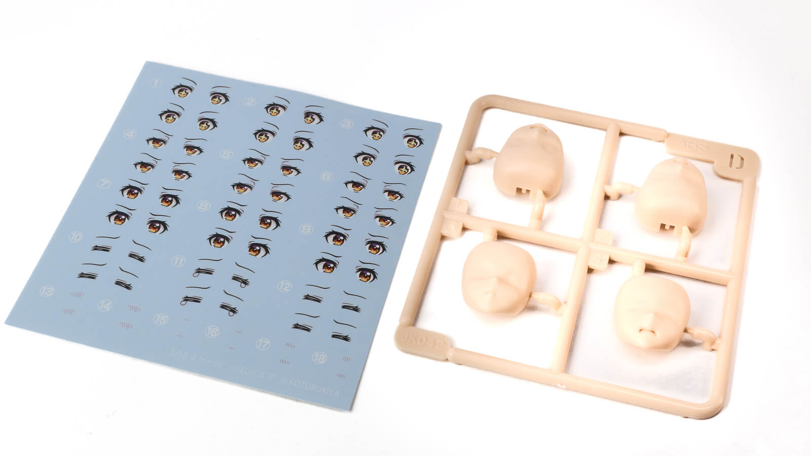 ほかにも創彩少女庭園用にはオプションのデカールが充実しています。それぞれのキャラクター用に瞳の色がバラエティ豊かなものや、フェイスパーツ込みでガラッとキャラクターも変わるものなど、カスタマイズ性に富んだアイテムがどんどん発売されています。