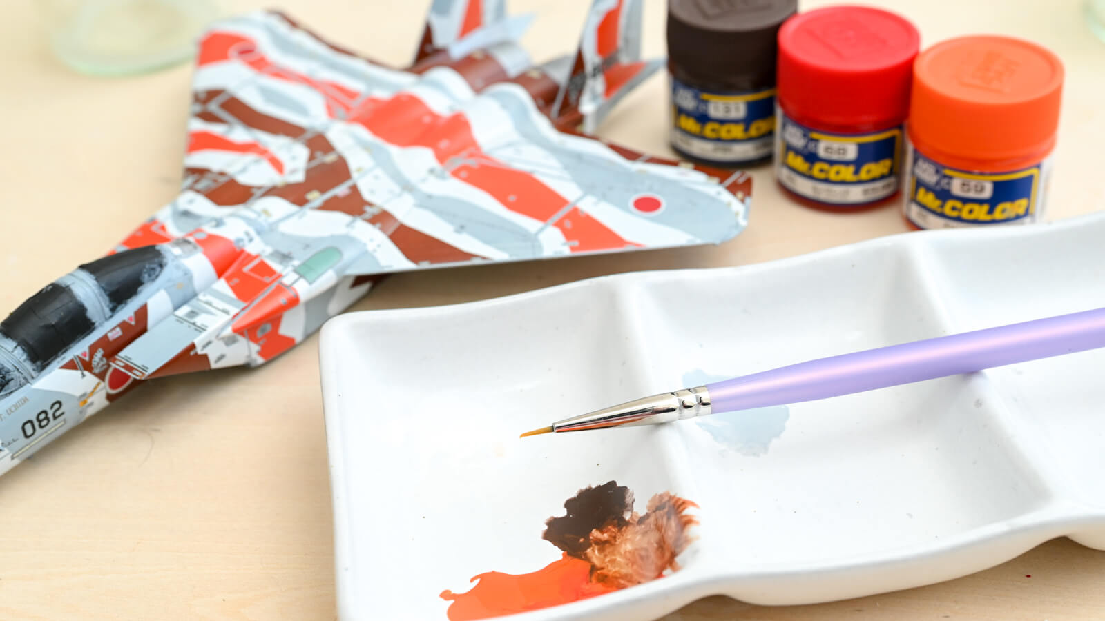 そうです塗るんです。何種かの塗料をグラデーションを作るように混ぜながら、ちょうどいい色を探していく。この時、完璧に同じ色じゃなくても大丈夫!色を完全再現するのは難しいけど、人間の目は良くも悪くも都合の良い方に解釈してくれるから安心して欲しい。最終的な色味は塗料ではなく、あなたの脳で調整するのです。