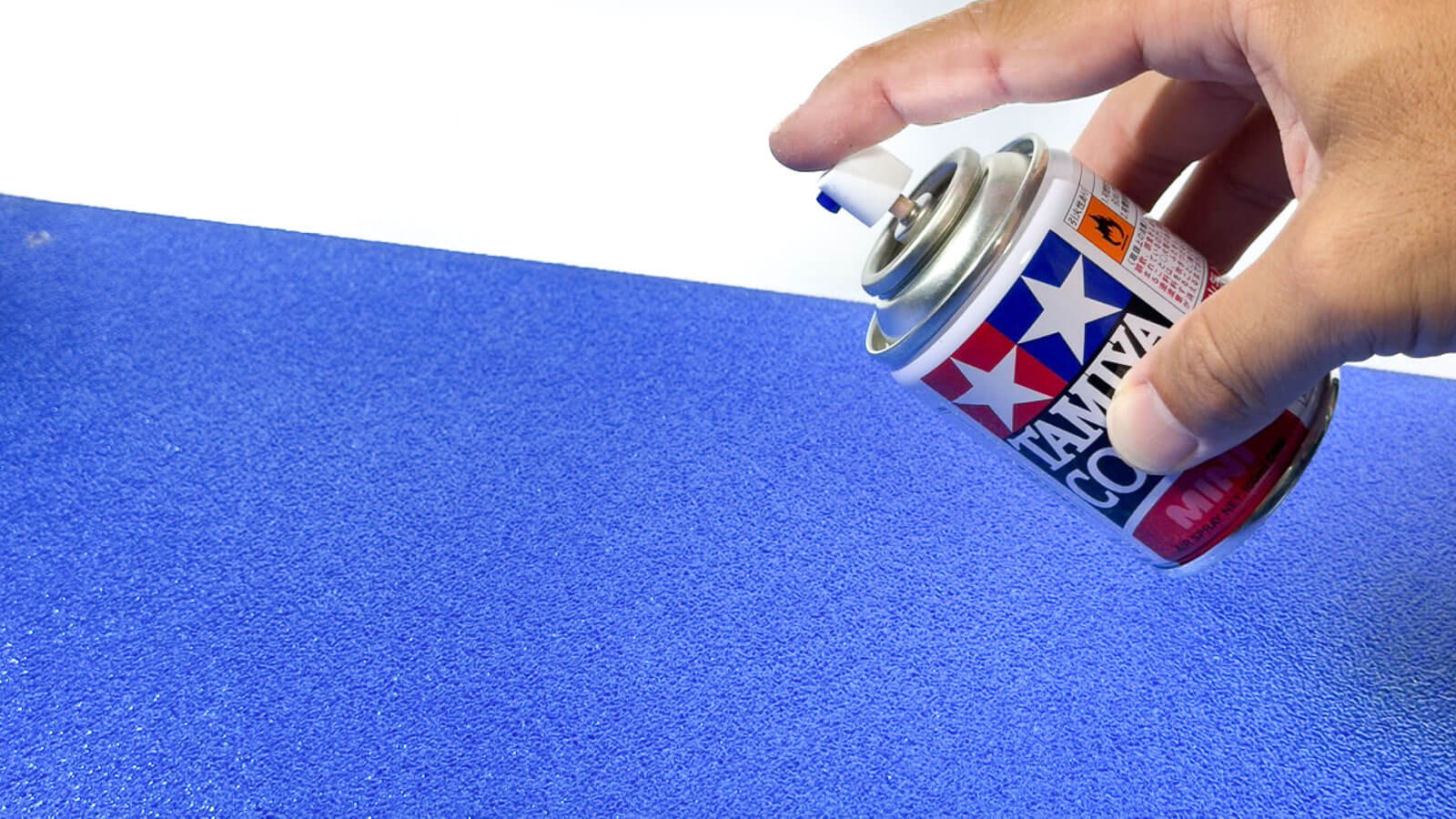 方法はとっても簡単! アクリル板の、片面がザラザラした面の裏側である「ツルツルした面」に、タミヤのクリヤーブルースプレーでを吹き付けるだけで完成です。