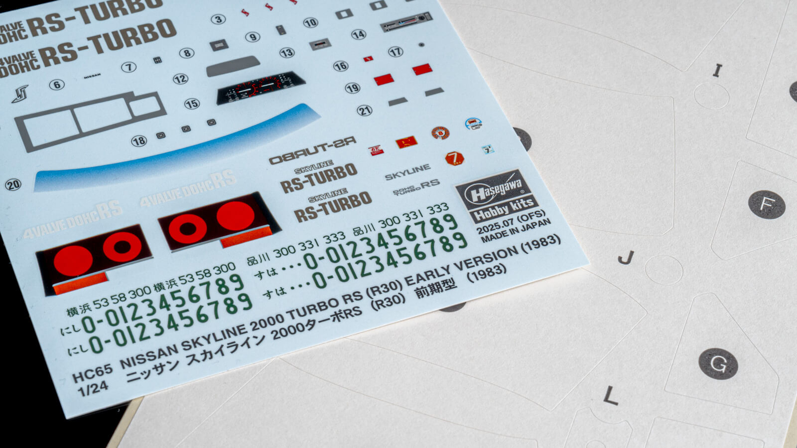 どうも。普通免許が取れる歳のときにはすでにスカイラインがR34型だった私です。大学に入ってクルマ好きな先輩とああだこうだと話しているうちに「GT-Rだけがスカイラインじゃないんだ!」とか「R33とR32の見分けかた」とかを知って、そこからハコスカだケンメリだと耳年増になっていくわけですが、正直いちばん馴染みがないのがR30型とR31型のスカイライン。なんでだろう。いまどきあんまり見かけないからかな……。そしてそんな私にR30スカイラインをこれでもかとわからせに来るハセガワの新キットが到来。組めば覚える。組めば親しめる。組めばトモダチ。それがプラモデルのいいところ。
