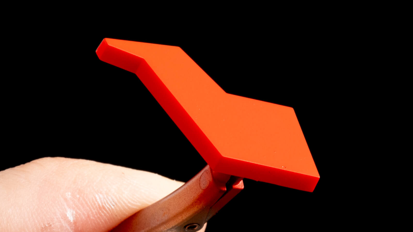 さて、白いブレストファイヤーのパーツに赤いシールを貼るとパーツの端面に白が見えてしまう問題があります。うーん、塗装したい。手早く鮮やかな赤を塗りたいとき、私はいつもNAZCAのフレイムレッドを使っています。下地が白なので何も考えず、とにかくガバっと吹きます。はいキレイ。はいめっちゃ発色いい。ほんのり黄色に振れた色味も己の中におけるマジンガーZらしくてよろしい。ありがとうフレイムレッド。
