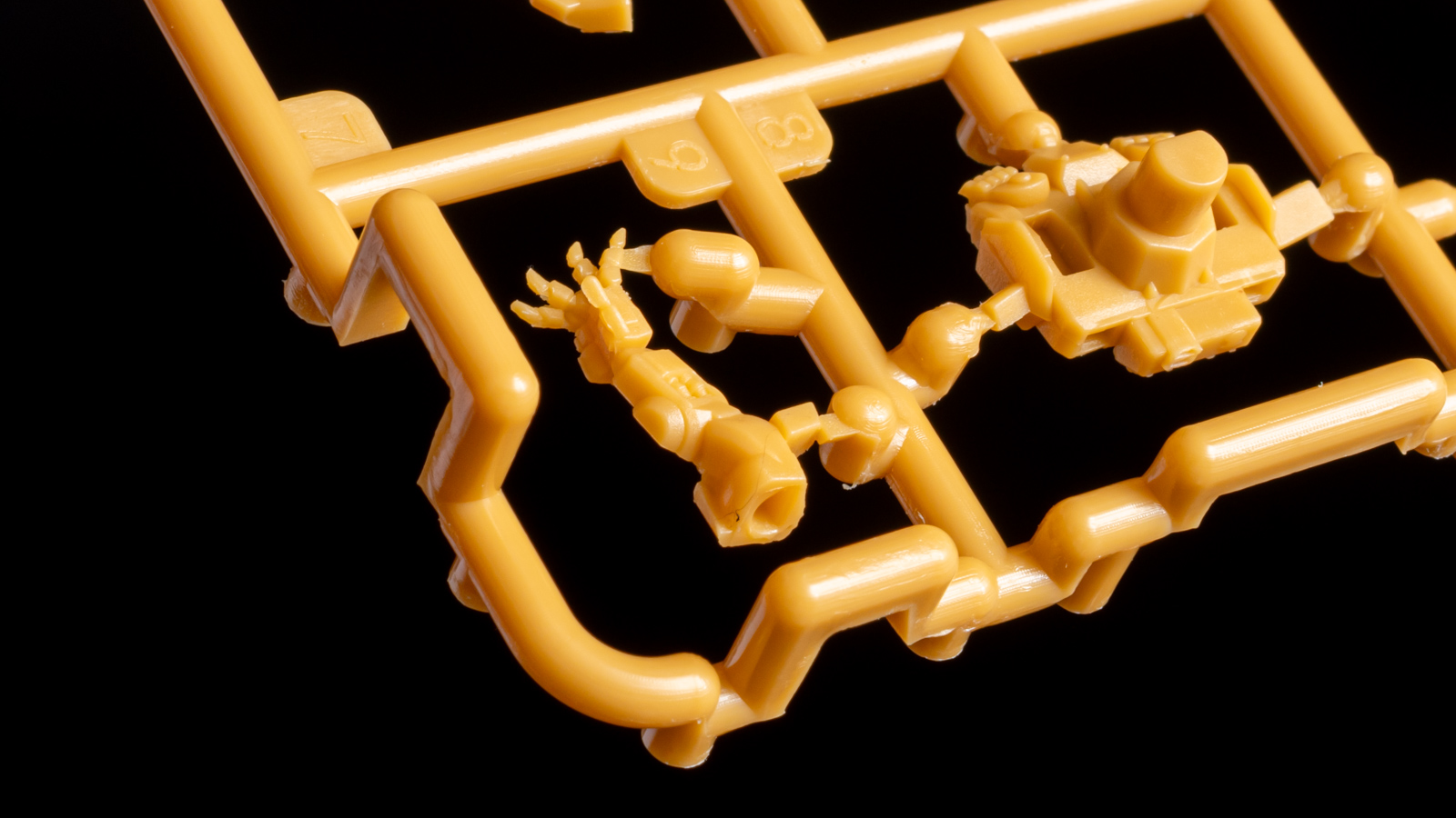 パーツはかなり小さく、切り出しや組み立てには拡大鏡を使うのがオススメ。ABS製という表記がありますが、素材はかなり硬めで切るときにサクッとした感触があります。パーツの随所に刻まれた深い彫刻、くっきりとした段差は単色の造形としても陰影がハッキリするし、塗装したら映えるだろうな……という気持ちをかき立ててくれます。