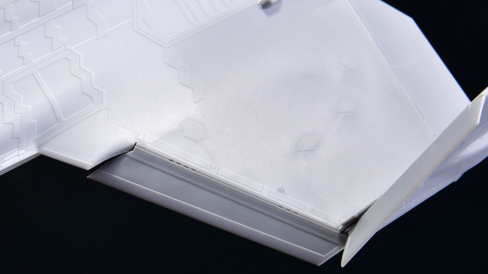 翼を畳んだ状態を選択すると、かっこいいヒンジパーツを使用できます。細かな彫刻がいけてますね!