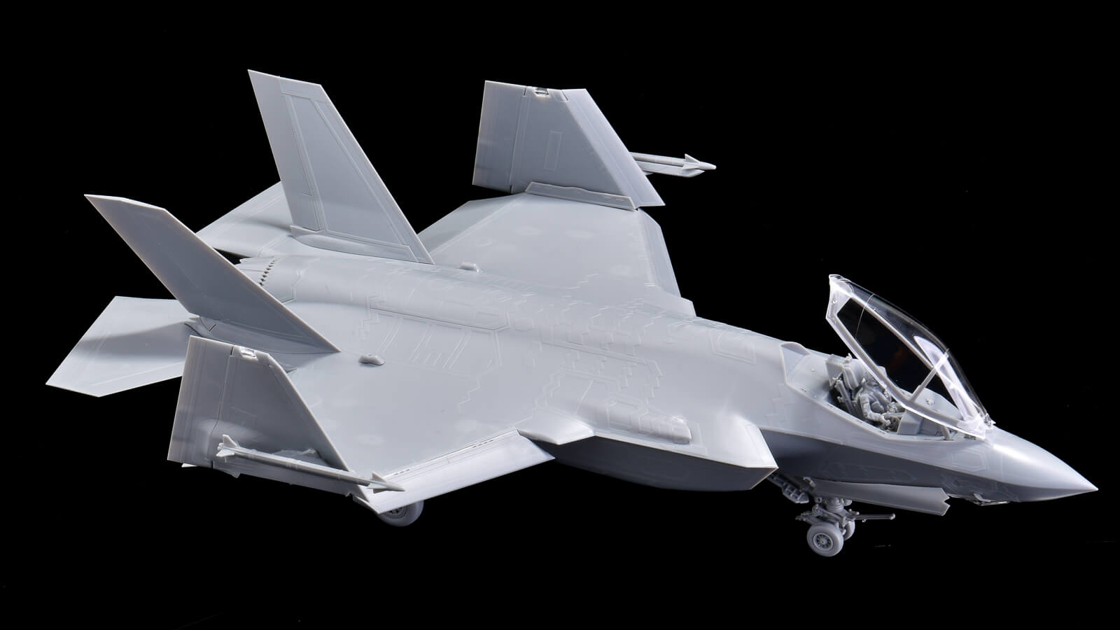 動翼部分も差し込むだけで正位置が確保されます。絶妙にカーブした曲面など、F−35の複雑な三次曲面と、主翼各部の動きが織りなす美しい姿を本キットは味わえます。
