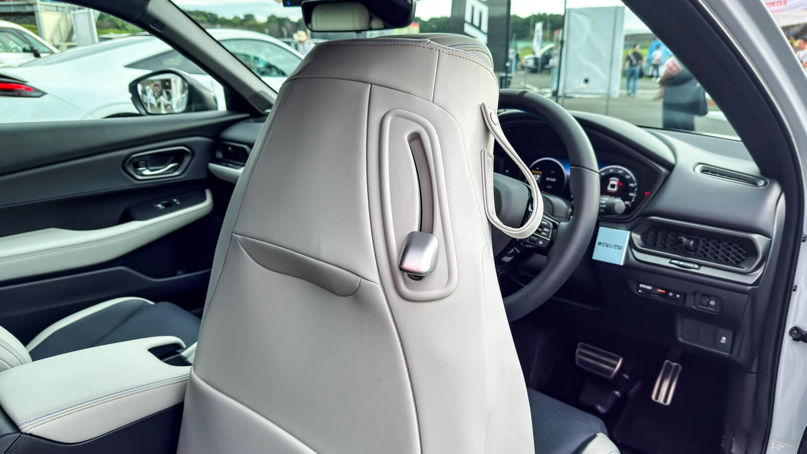 実車の発売とほぼ同タイミングで発売されたタミヤの1/24 プレリュード(これはHondaが図面や資料を提供してそうなるようにタミヤに売り込みをかけたのが真相だ)をしげしげと眺めていると、とにかくシートの分割がやたらと凝っている。実車の色分けと構造を再現するためにひとつのシートが2色4パーツに分割されていて、バックレストの側面にベルトループ、背面には縦に入ったスリットとそこから突き出したノブが彫刻されている。おそらく実車でも特徴的な箇所だからわざわざ彫刻したのだろうが、その用途が皆目検討もつかない。