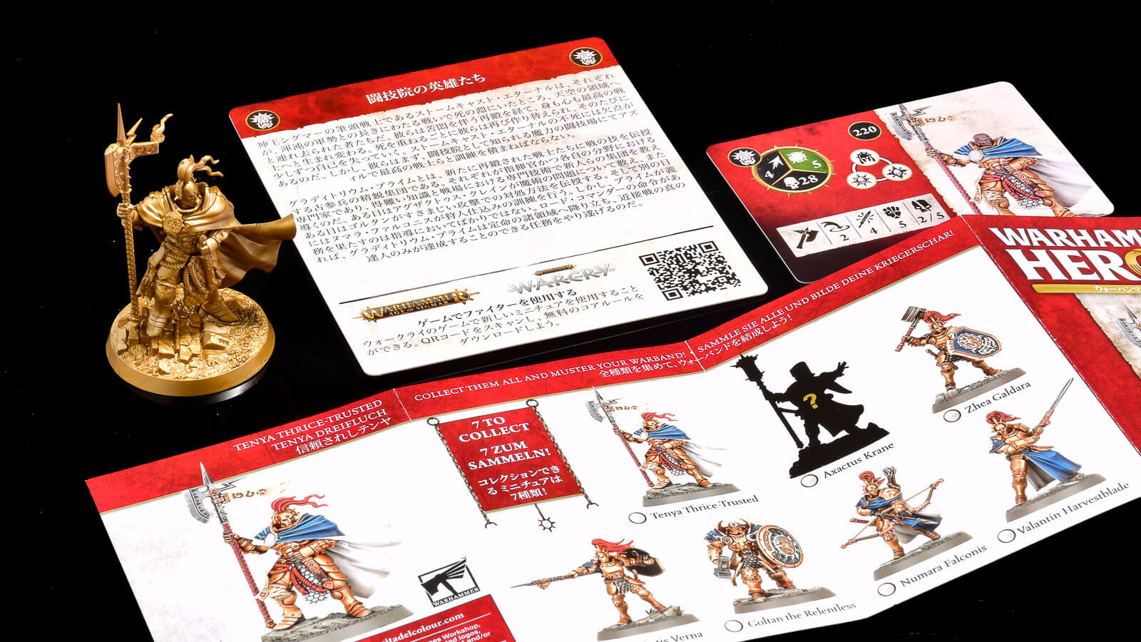 お値段も1200円ほどで、ミニチュア、キャラクター解説カード、ゲームで使用する際の能力が記されたカードがセットされています。どんなキャラクターが出るかは開けてからのお楽しみですが、どのミニチュアでも『ウォーハンマー』のキレキレのディテールや、面白いパーツ分割を堪能できます。