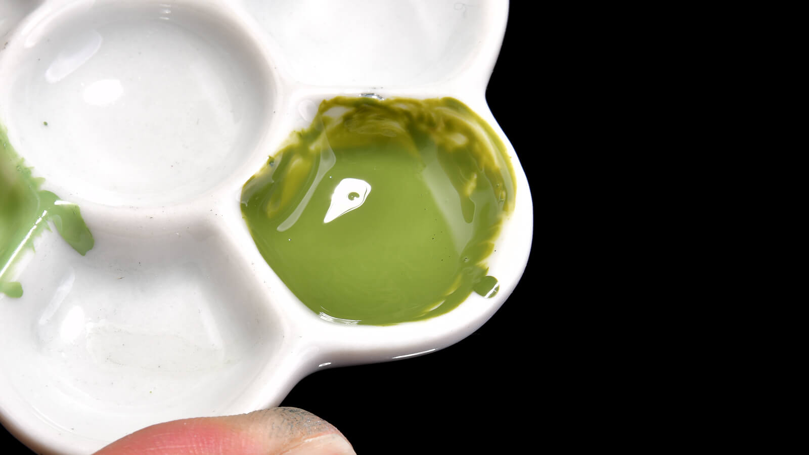 濃いめの緑の仕上げとして「ハイライト1」を最後に上塗りします。これを塗ると、グラデーション効果がさらに際立ちます。
