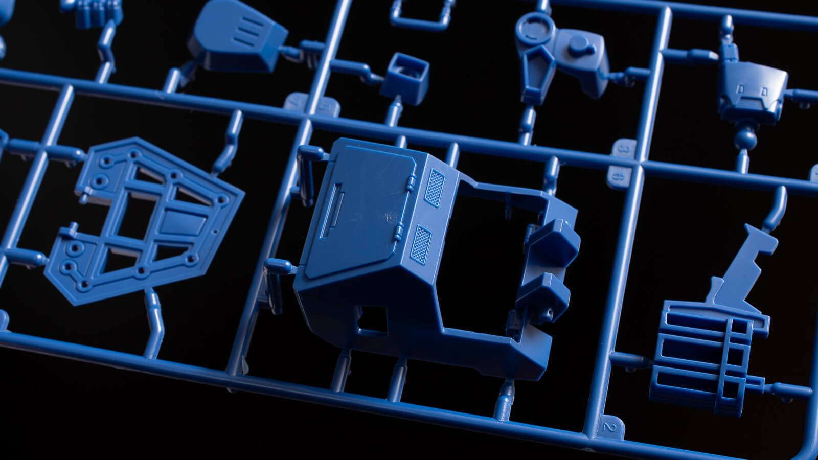 個人的にすごくかっこいいアレンジだと思ったのが、脚部のサンドトリッパー(砂漠走行用の装備)の解釈。設定イラストでは、ベルトコンベアみたいなシンプルなディテールなのですが、現代の戦車の履帯を思わせるようなデザインとなっています。1/24スケールという大型モデルにおいて、この解釈はディテールの密度感も気持ち良くなるので、素晴らしい選択だと思います。そして何より、しっかりと走りそうです。組み立てしやすくなるように、少ないパーツ数で分割しているのも良いですね。