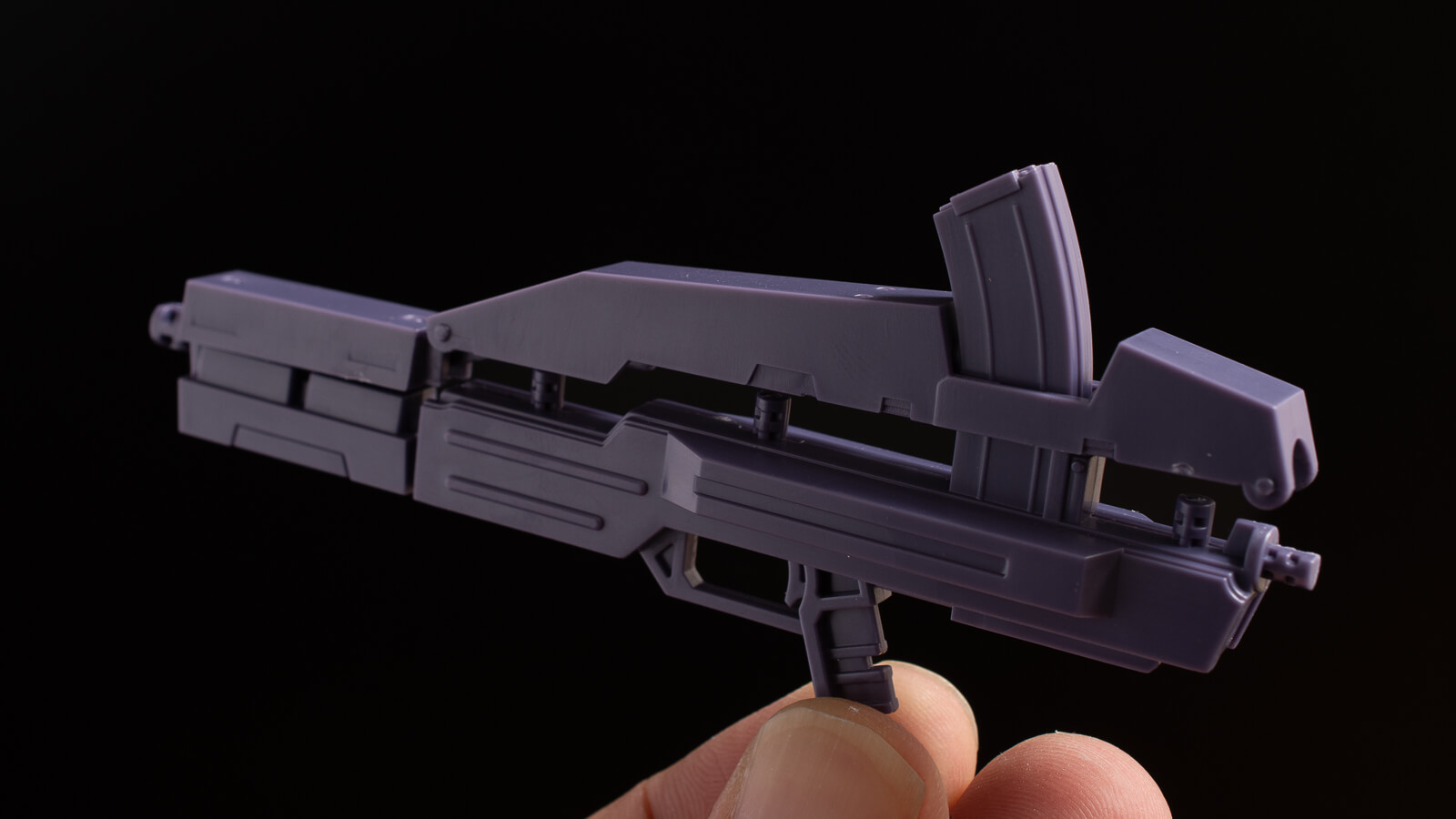 おまけにしては凄すぎるのが、フィアナが搭乗したベルゼルガDTが装備しているアサルトライフル。左右貼り合わせたパーツに、上からカバーをするようにパーツをセットすることで、よく見える上側に合わせ目が一切来ない分割になっています。
