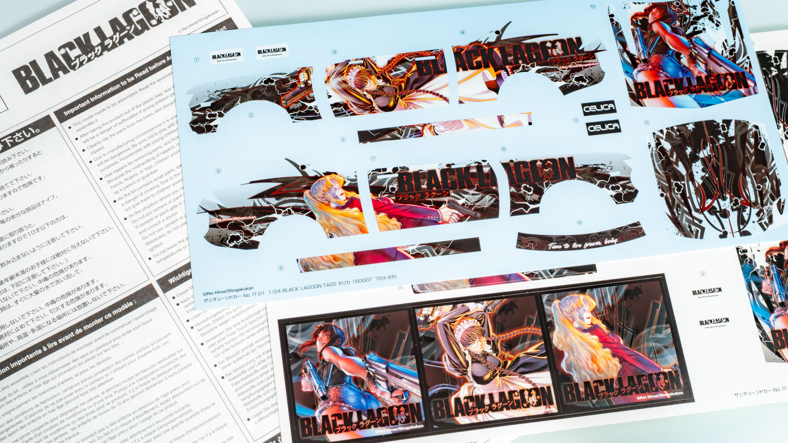 アオシマの”新生痛車シリーズ”を定点観測しているワタクシですが、「ザ☆チューンドカー」のシリーズにラインナップされた最新作(実質シリーズ4作目と位置づけて良いでしょう)で、ついに「キタコレ」の4文字が脳内に輝きました。1/24 BLACK LAGOON TA22 セリカ 1600GT ‘72(トヨタ)でございます。側面のグラフィックが4分割され、「ボディサイドにイッパツで巨大なデカールを貼る」という高難度のウルトラCが要求されなくなったのです。現代的な大きいグラフィックを取り入れつつ、これに貼りやすさという要素を素直に加えたことでアオシマの新生痛車シリーズは次なるステージに入ったと言っていいでしょう。めっちゃくちゃいいぞ。