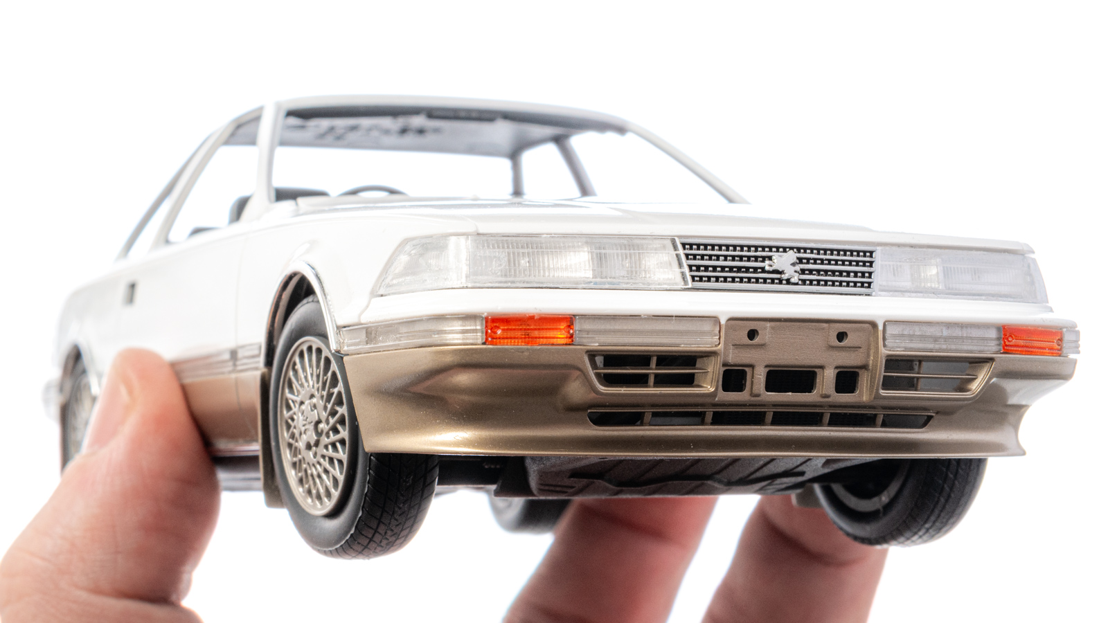 すなわち、今回のハセガワの新金型がやっていることは単なる「ディテールの細密化/高解像度化」ではなく、光の反射、モールの段差、素材の層の重なり──つまりソアラというクルマが本来もっている多層構造を塗装でごまかさずに、プラスチックそのものの物性で成立させてしまうためのチャレンジ。つまり、ソアラのデザインの構造を最初からパーツにするという野心的な試みなのです。