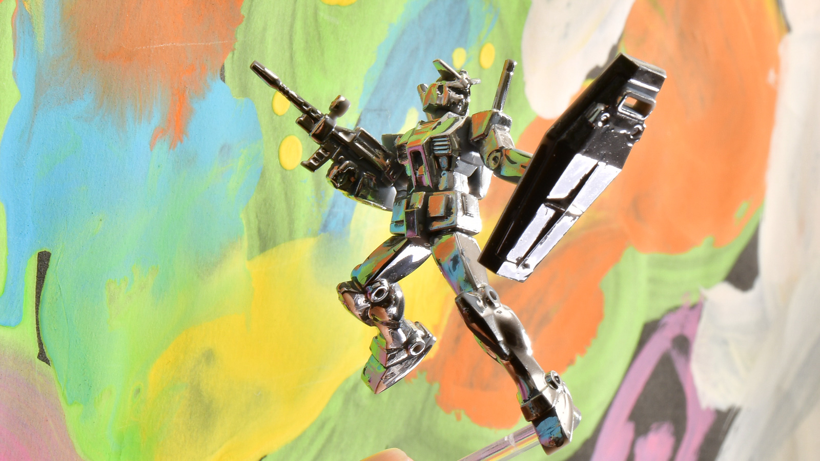 娘が幼稚園で描いてきた絵の前に置くとまさにキラキラの世界! 各色が映り込むほどの美しい輝きとなります。部分的にメッキ調仕上げにしたい、メッキパーツのリタッチに使うなど、このセットを買っておけば模型製作に役に立つこと間違いなし。超お手軽に最高の輝きをゲットできるのでぜひ試してください。それでは!