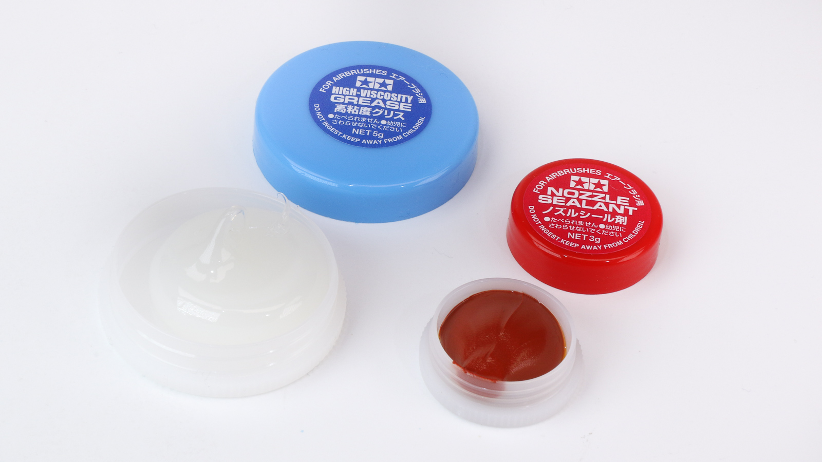 今回は高粘度グリスに活躍してもらいましたが、エアブラシの塗料に直接触れない部分の潤滑にはこの高粘度グリス、とおぼえておきましょう。ニードルキャップ、ノズルカバー、本体のあいだもこの高粘度グリスをネジ部分につけると空気をしっかり密閉できるし、かなり活躍どころが多いアイテムです。ハンドピースを買ったらぜひこのエアーブラシ用クリーニングセットも手に入れて、メンテナンスに備えましょう!