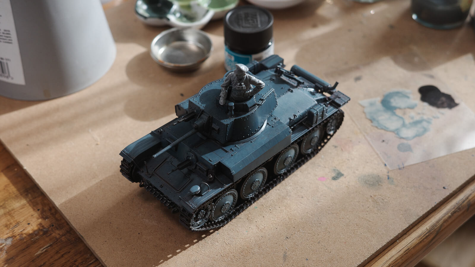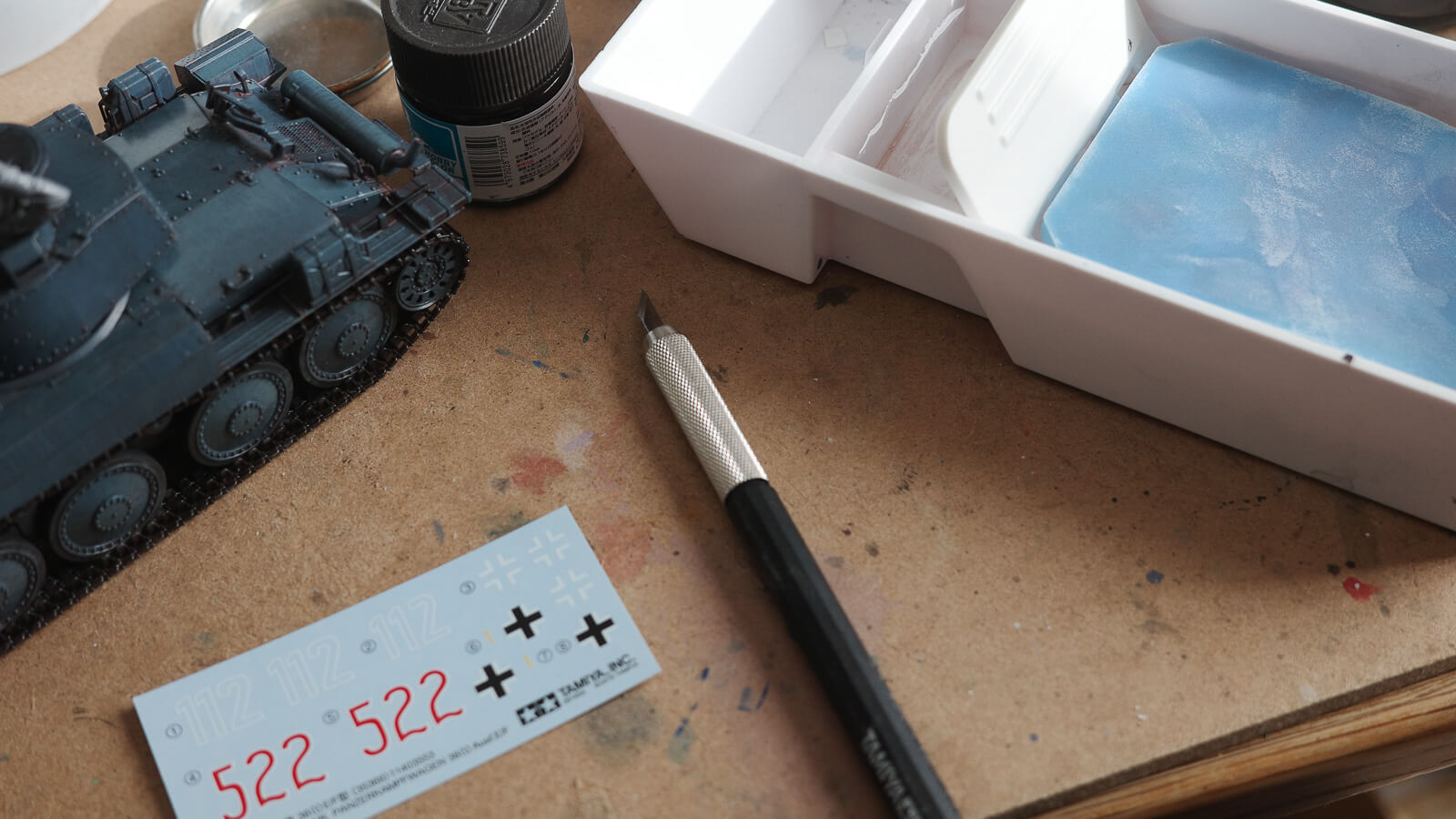 帰宅して机を見ると、そこにはさっきまで無地だった戦車が、デカールによって急に饒舌になった姿を僕に見せてくれます。「どこ所属なのか」「どんな役割なのか」を語り始める……。早く続きをしたいぞ! という自分の気持ちを盛り上げてくれるのです。出かける前に、デカールを貼るという選択。まとまった時間が取れない日でも、模型はちゃんと前に進める。むしろ、作業をやりすぎない、触りすぎない、気持ちよく区切れる……そんなメリットが揃っているのが、「出かける前のデカール貼り」だったのでした。