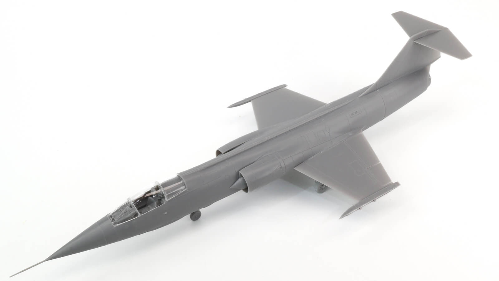 尖った機首にちいさな翼、最高速度マッハ2を達成するためのデザイン。F-104を作ると、いつもこのシャープなスタイルに感動します。しかし今回は、組み立てをマッハ2にするための仕掛けがいくつも詰まったキットにも感動したのでした。