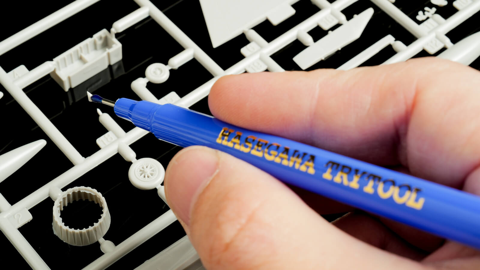 アルゴファイルの超硬セラミック製スクレーパー「マジ・スク」は、ナイフのように切るのではなく、滑らせて削ることによって表面を整える工具。あらゆるジャンルの模型の仕上がりと作業ストレスを大きく変えてくれる一本です。パーティングラインや合わせ目の除去をするときは、ナイフよりマイルドな切削感でスーッと撫でるように処理でき、刃が食い込んでパーツをえぐってしまう事故が起きにくいのが強み。刃物ではないため手を切るリスクも低く、パネルラインも軽くケガいてシャープさを足せちゃう……という万能ぶりが人気です!