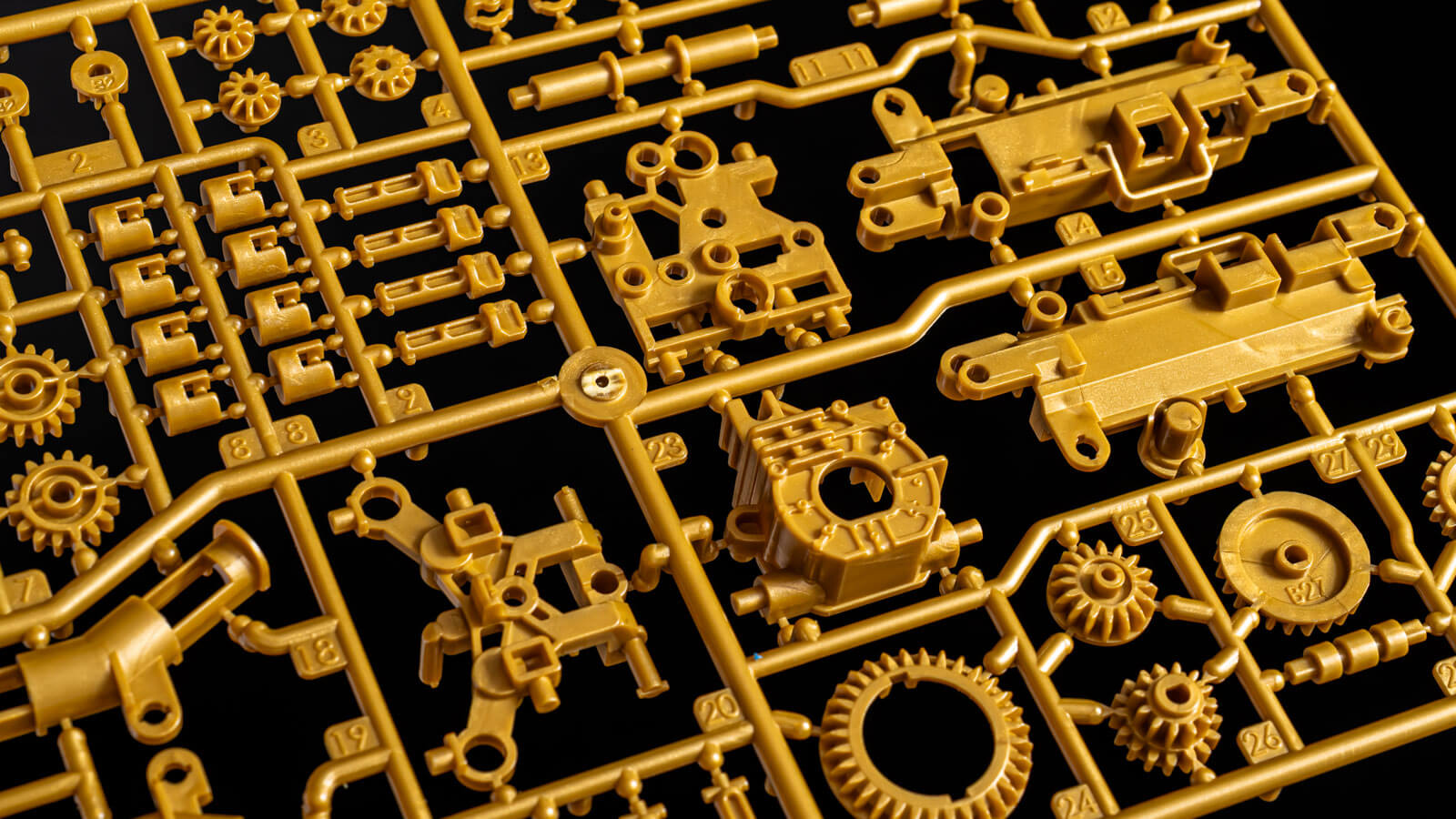 パーツの設計/製造精度が高いのはもちろん、単位面積あたりにどれだけのパーツを並べられるかを攻めに攻められる金型の設計/加工のレベルも非常に高いことがうかがえます(=金型の加工難度と耐久性、製造コストとのせめぎあいがここにあるのだ)。完成すれば忘れ去られてしまう景色ではあるのですが、このキットを手にしたら作り始める前にこの状態をぜひとも目に焼き付けてください。