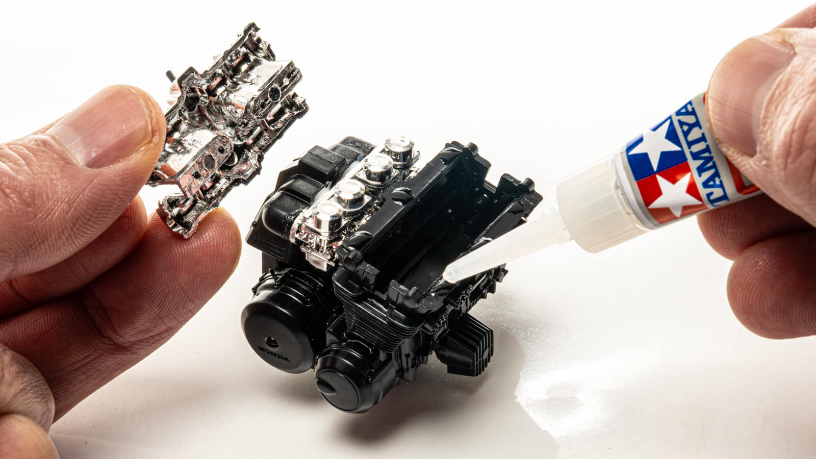 「2025年12月13日にタミヤ瞬間接着剤 (速硬化タイプ) IIが新発売」との報が目についた。ちょうどバイク模型を組もうとしていたところで、メッキパーツとゴム部品が入り混じるプラモデルの組み立てには瞬間接着剤が必須。なのでこの機会にタミヤの新マテリアルを試してみたら調子良かったので紹介したい。しかし「瞬間接着」と謳っているうえに「速硬化タイプ」だなんて重複表現でしかないのだが、「シャア専用高機動型ザクⅡ」みたいな過剰なリッチさがあって嫌いじゃない。強そう。
