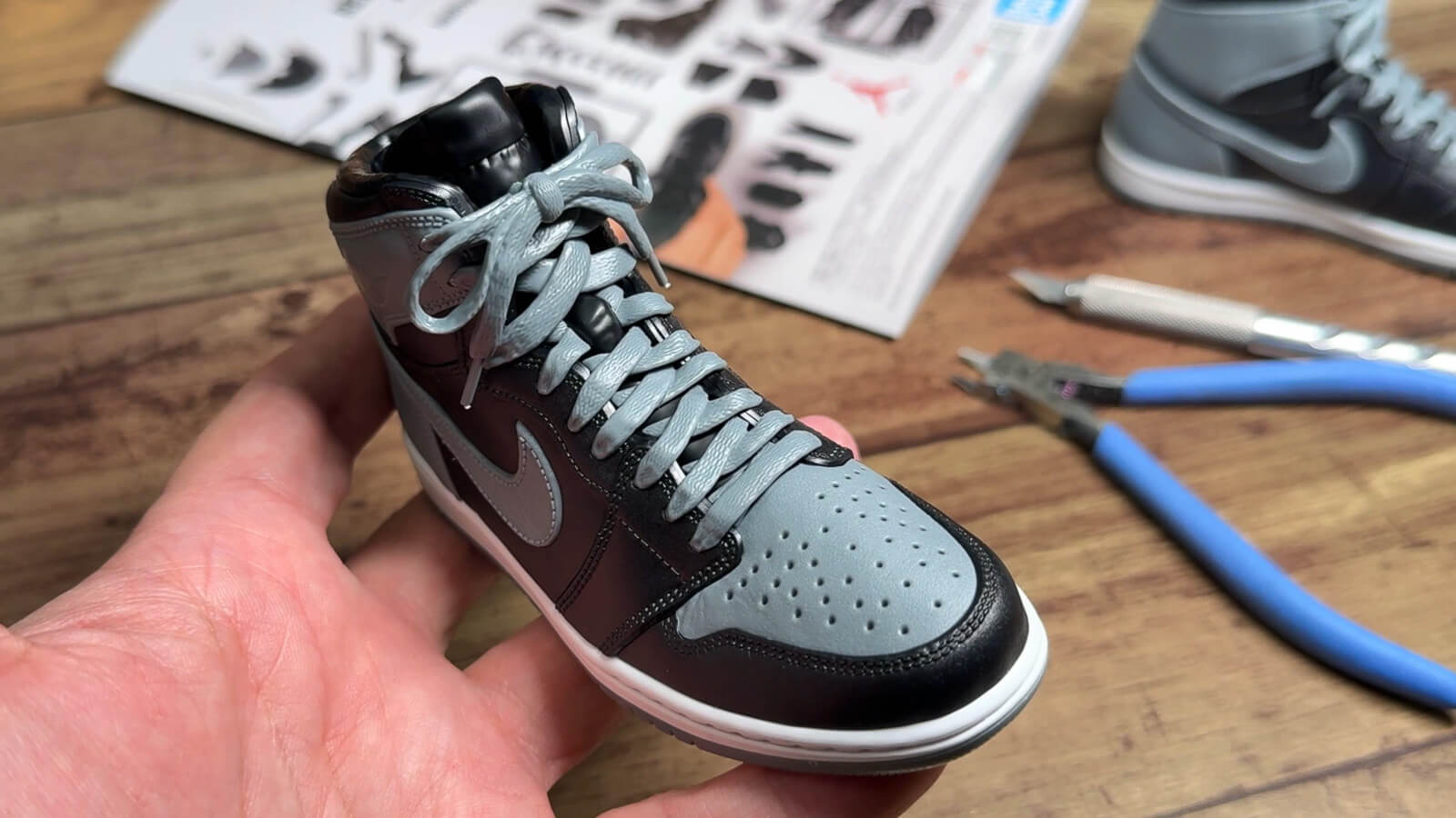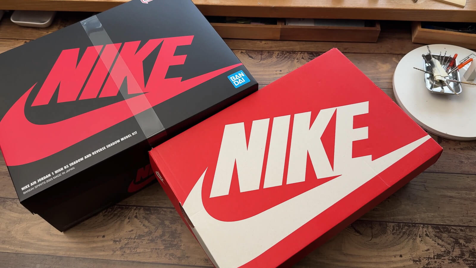去年からはじめた趣味が、スニーカーコレクション。まだまだ始めたばかりで沼にはまっているつもりはないのだが、月に 1 足のペースで購入している僕を見る周りの目は随分と冷ややかではある。そんな僕にピッタリのプラモデルが発売された。「NIKE AIR JORDAN 1 HIGH 85 SHADOW AND REVERSE SHADOW MODEL KIT」。事前の抽選販売には外れたものの、僕のYouTube「Chop!!! Factory」の心優しいリスナーさんが譲ってくれた。