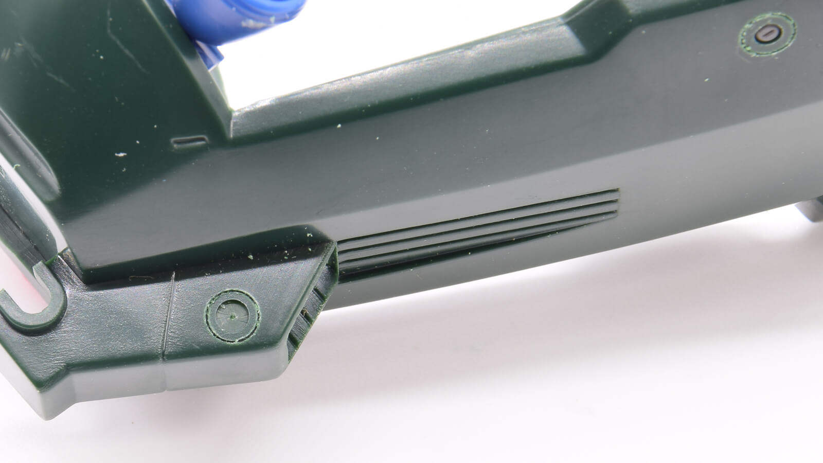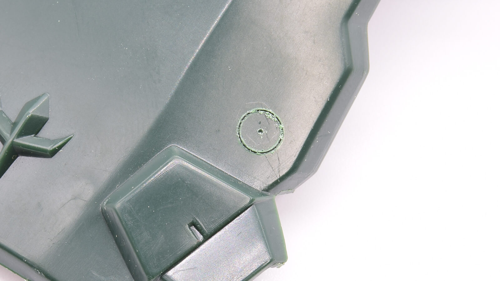 最初は少しコツがいるので、不要なパーツなどで練習してみると感覚が掴みやすいですね。 センターガイドのピン穴は、作業後にシアノンやパテで埋めてしまえば問題ありませんが、実はこの「穴」をあえて活かす面白い方法もあります。