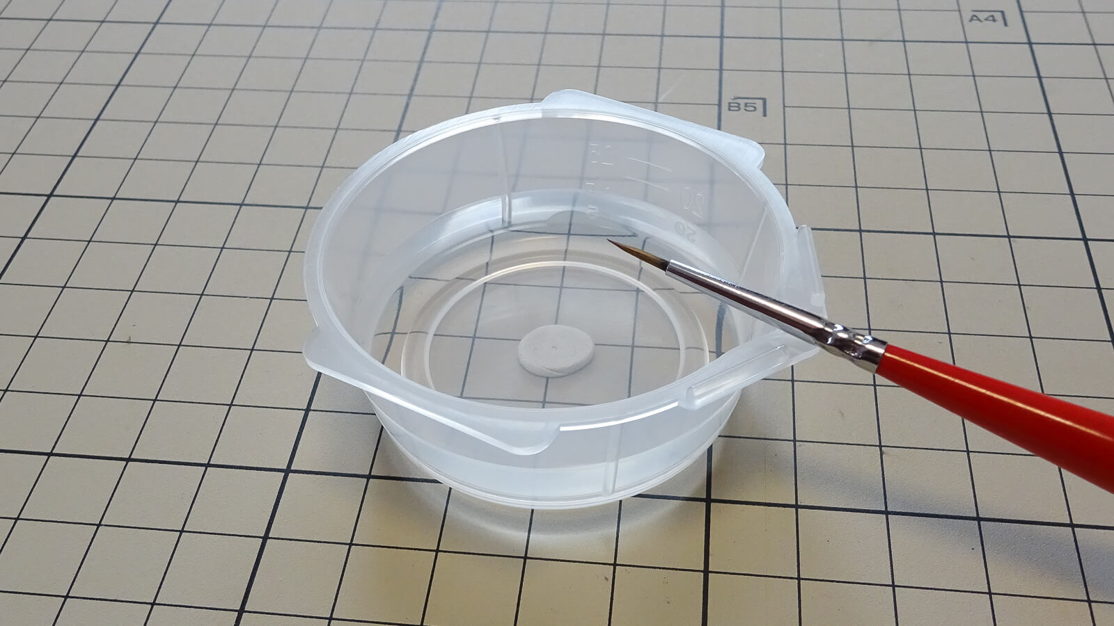 さらに、筆塗りの時にも僕たちを助けてくれます。塗料皿を使って筆塗りをしているとき、うっかり塗料皿をひっくり返してしまった……なんてことを「ひっつき虫」があれば未然に防げます! 塗料皿の裏側に少量のひっつき虫をぺたりと貼るだけで、意外にもしっかりと塗料皿を固定してくれるのです。筆を少々雑に置いたくらいではびくともしません。この安定感が、僕たちの模型ライフにも安定感を与えてくれます。
