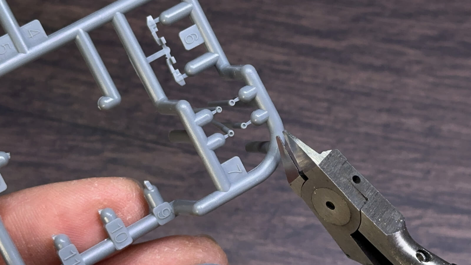 しかしこのタミヤのサンダーボルトは違います。片側4本、計8本の機銃パーツをランナーから切り出し、主翼の穴に差し込むと、「スルスルと差し込んで、止まったところが正解」なんです。