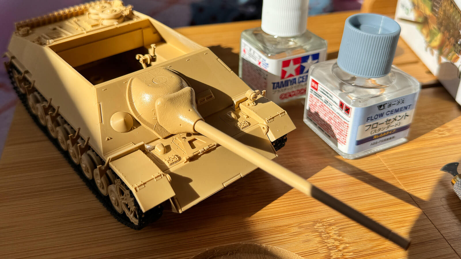 組み上がった模型を自室に持っていくと、ちょうど自室にも良い光が差し込んでいました。その場所において、GRIIIXのフィルター効果を活かしてパシャリ。柔らかな雰囲気の写真が撮影できました。手の加えられていないまっさらなプラモデルが光を纏うだけで、こんなにも素敵な景色を見せてくれる。それは作る楽しさにも繋がると思います。窓際や日光が差し込んできる場所にぜひ一度模型を置いてください。素敵な景色と素敵な写真が撮影できますよ。