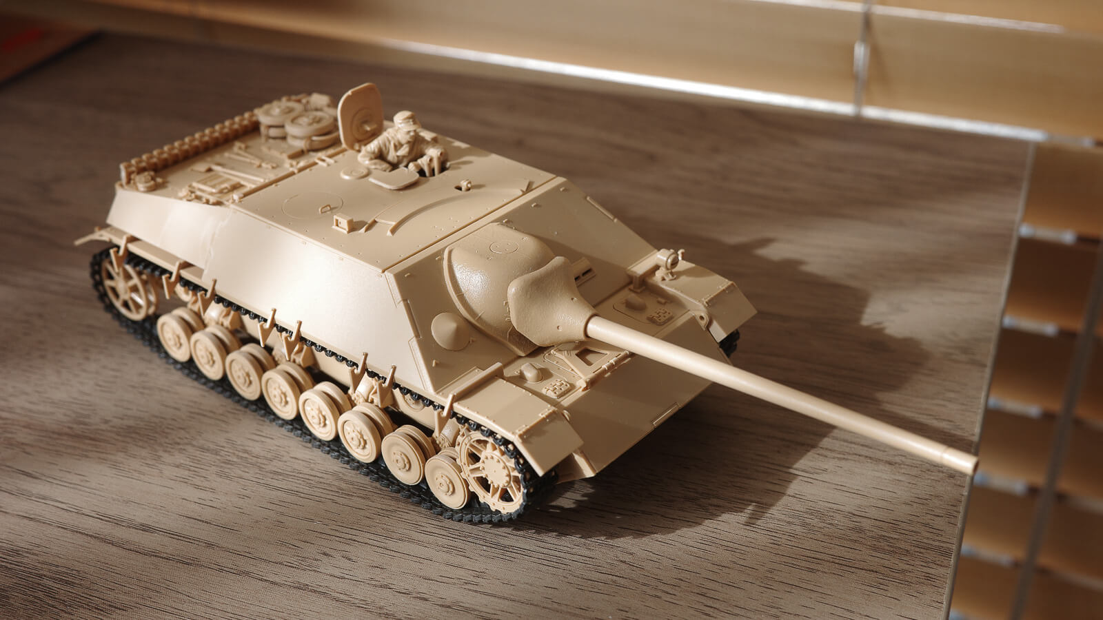 その理由は「日光」。窓際になったことで、より明るく、プラモデルが光を浴びます。するとパーツの立体感が際立ちます。明るく照らされたパーツ、影が落ちたところによる明暗対比によって、塗っていないプラモデルでも非常に魅力的な姿を見せてくれるのです。