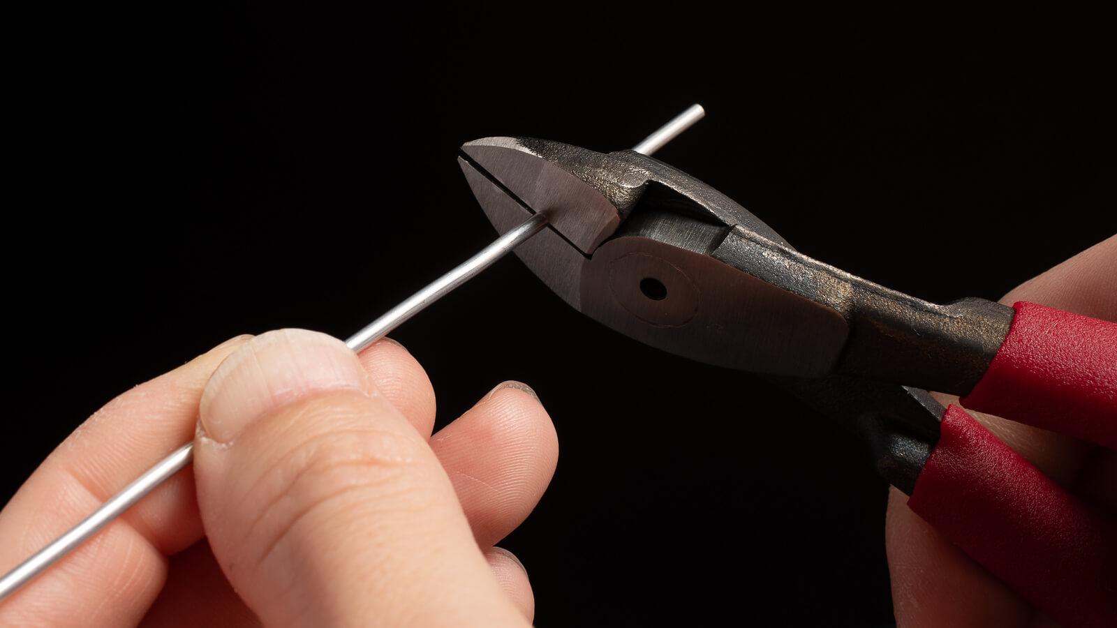 固定ポーズに改造するときに関節をつなぐことでおなじみ、アルミ線は金属線としては柔らかいので5mmまで切断できます。ニッパーを握ればスッと切断できます。