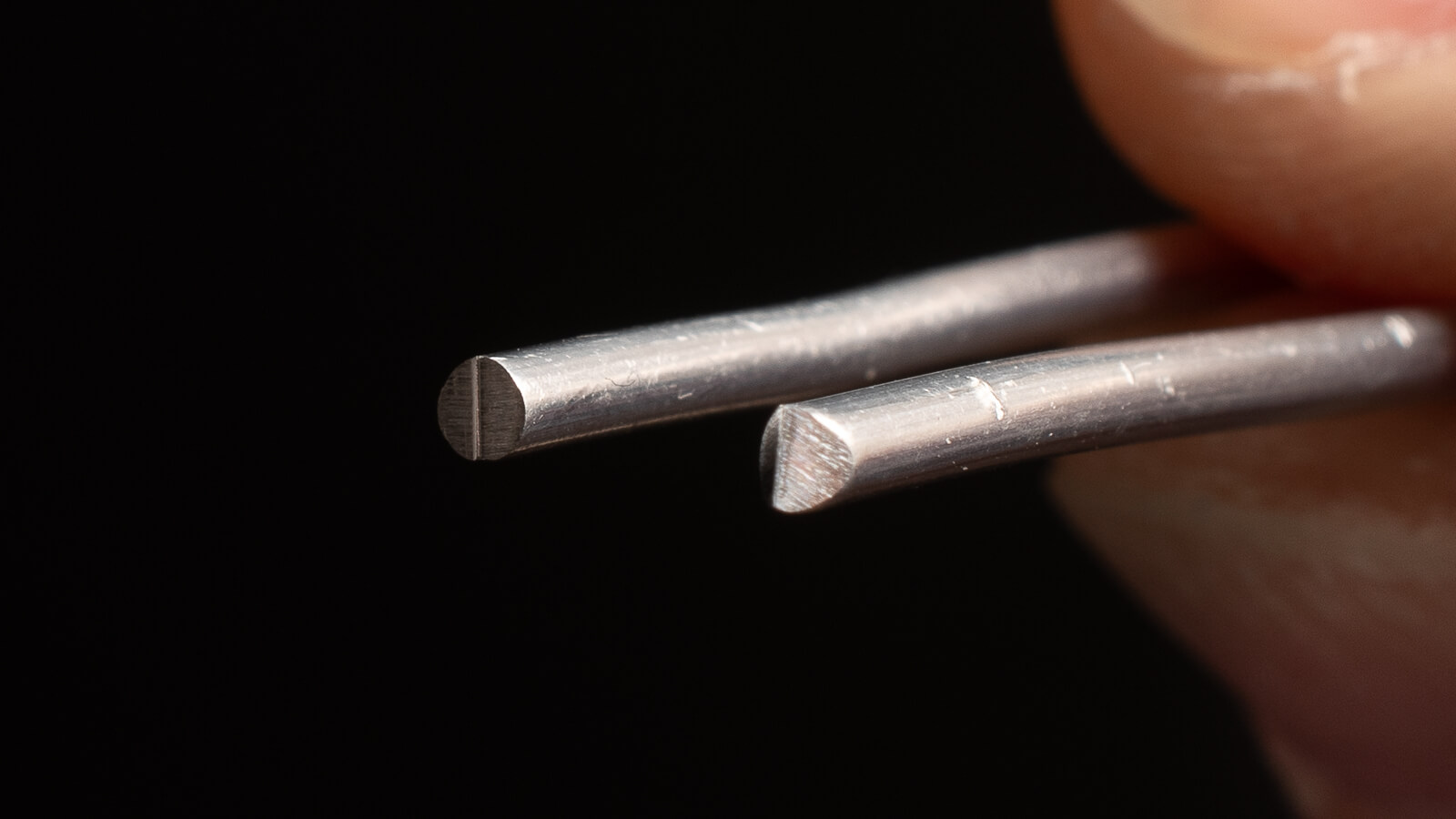 ところで、今回の説明書で知ったのですが、硬い金属は切断したときに若干ゆがむとのことで、確かに言われてみてよく見ると、ちょっとだけ先端側面形状が広がっていますね(ニッパーの食い込んだ部分に対して側面に金属がつぶれて逃げて広がっている)。