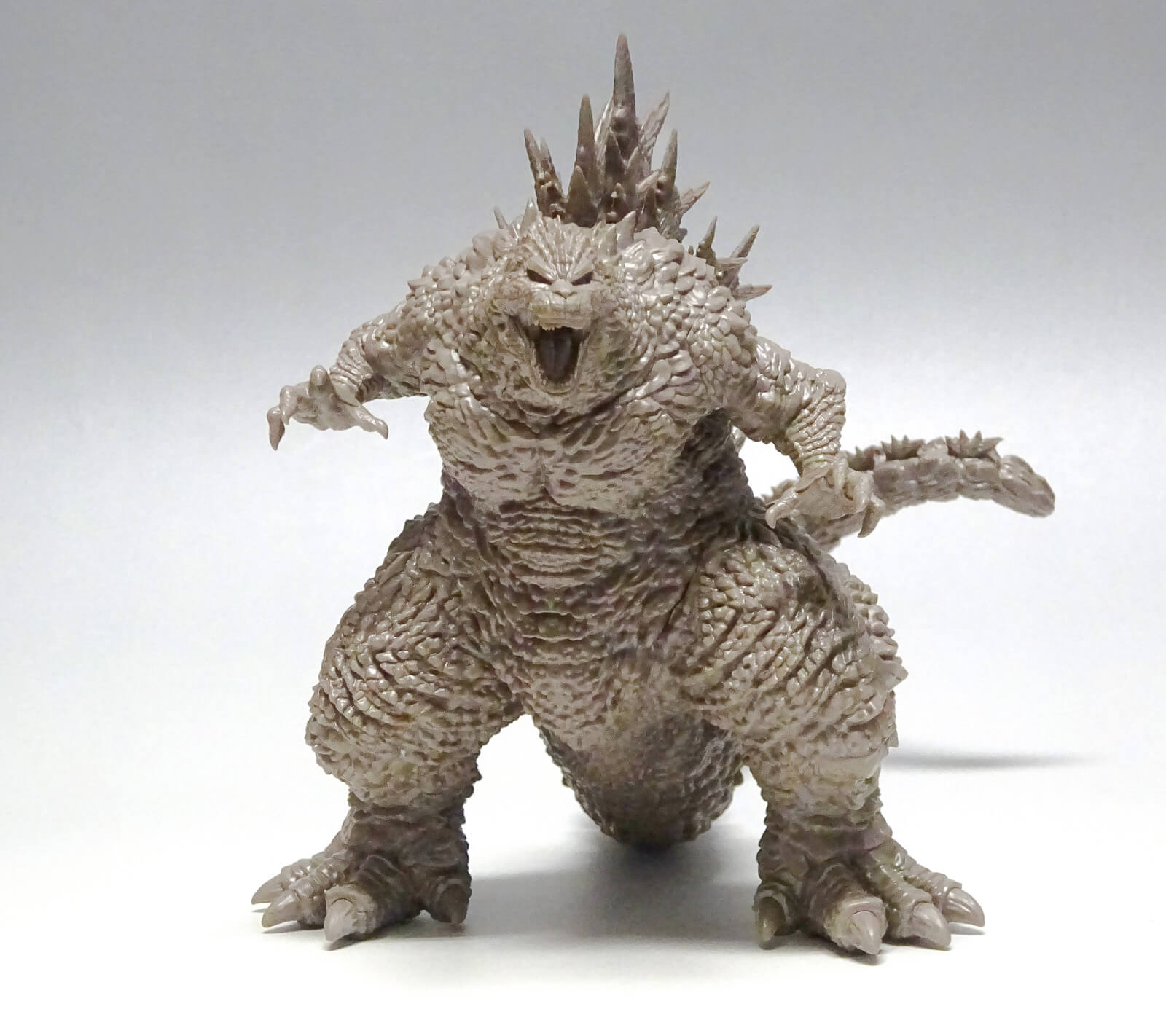 普段作っているガンプラなどとは異なるジャンルのキットでしたので、様子を見るためにひっつき虫を使って仮組みをしてみます。どうですか、この迫力! 接着していないので、パーツの合わせ目に隙間が出来てしまっていますが、ゴジラの雄叫びで全身にひび割れが入ったと見立てても良いのではないか? と思ってしまいました。キットの作りは把握できたので各パーツ接着していきます。