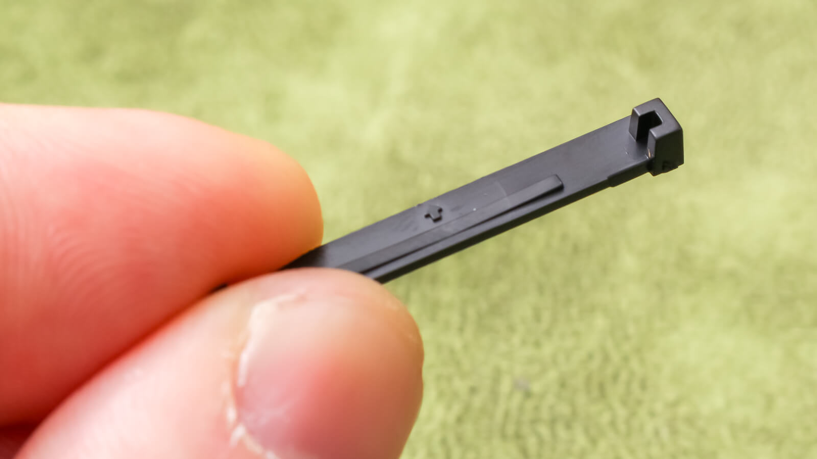 ボディとシャーシを繋ぐためのアタッチメントになる小さな板状のもので、上下がわかりやすいように矢印が書かれている。こういうところに実物とプラモデルの超えられないギャップがあることを味合わされるし、だからこそどっちも面白いのだと感じた。