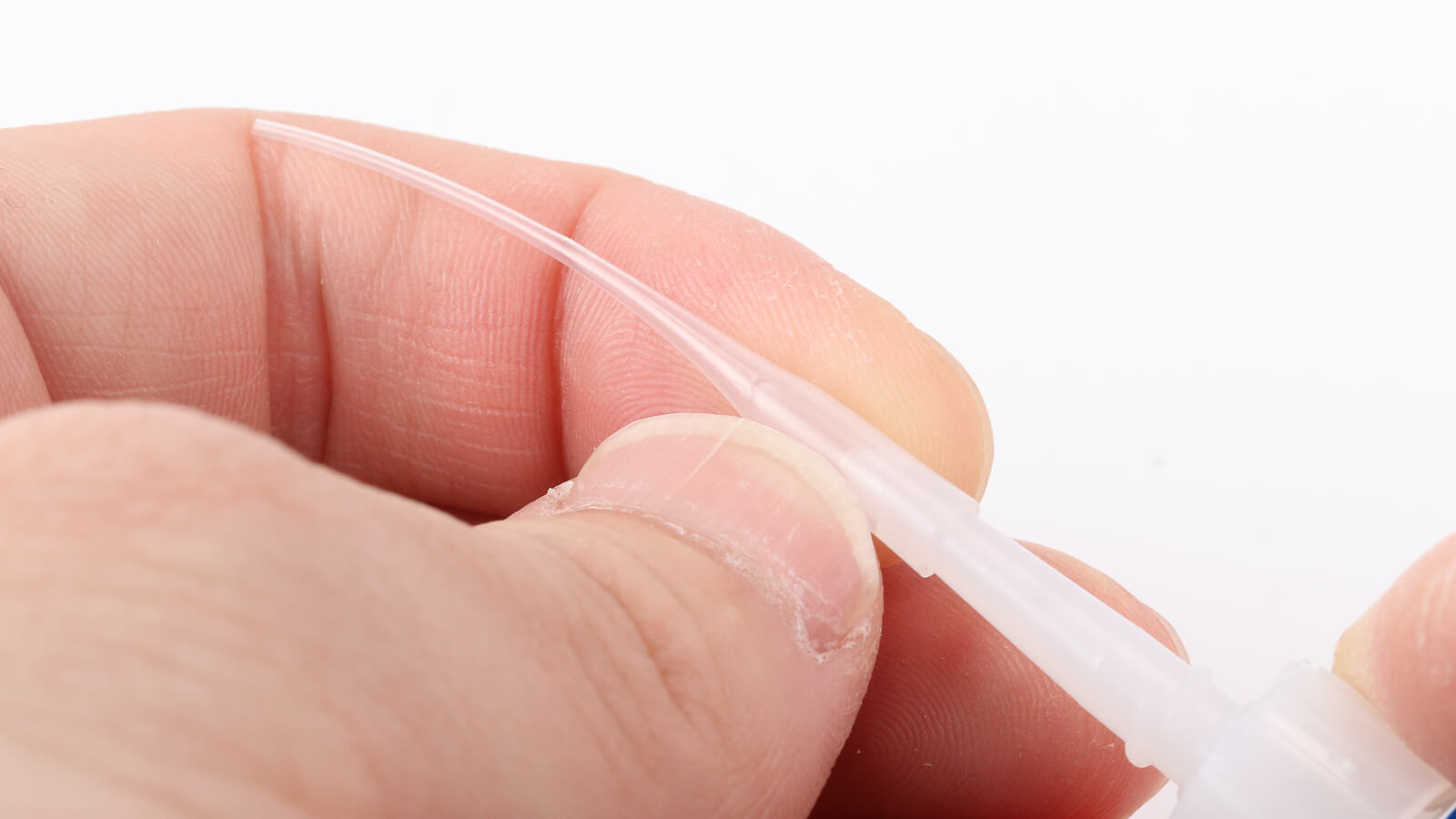 いわゆる瞬間接着剤用ノズルも使えるので、今回はそれで塗布をコントロールしました。瞬間接着剤がくっつかない素材のグルーアプリケーターとも相性がよいでしょう。