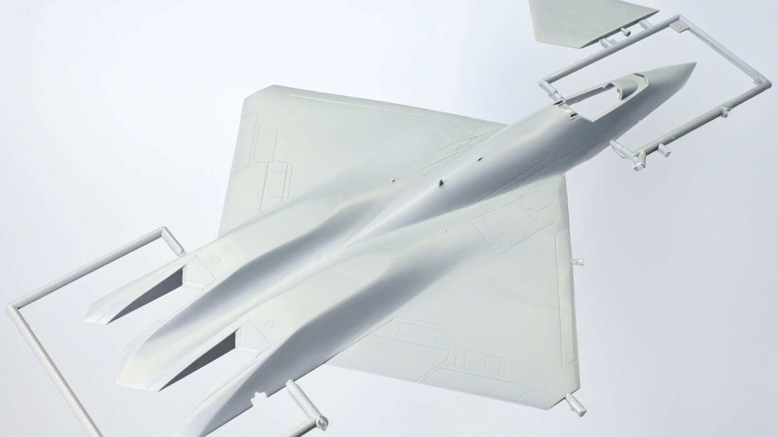 ところが実機を調べてみると、YF-23の水平尾翼は舵面を持たない全遊動式。つまり尾翼全体が動いてピッチ制御を担う構造になっているのです。軸一本で保持するキットの構成は、簡略化や妥協の結果ではなく、超音速戦闘機としてごく当たり前の設計思想を、素直に反映したものだったというわけです。「試作機だから変わった機構を持っている」というよりも、むしろ当時すでに標準となっていた空力制御の延長線上に、この機体もあったことが見えてきます。
