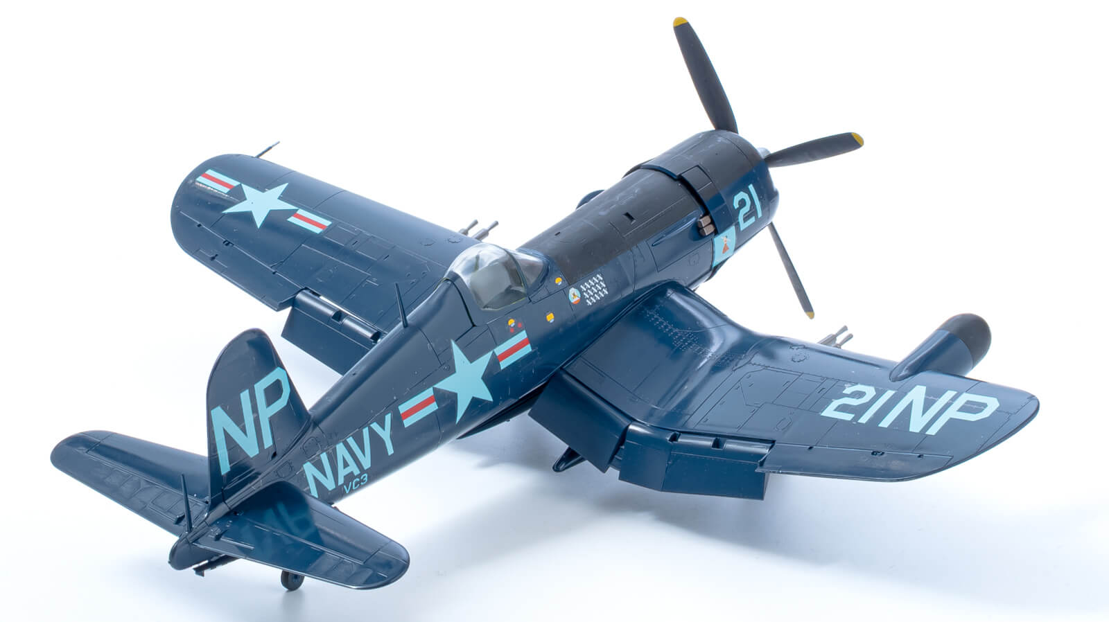 ここ最近、自分の中でのプラモデルに対する欲がちょっと肥大化していて、あれもこれもやりたい……というのが足枷になっていました。しかしハセガワのF4U-5Nはボリュームのあるカッコイイ飛行機がストレートに仕上がるという意味ですごく包容力のある模型でした。ひさびさに「ああ、模型が完成したぞ!」という気持ちを味わえたので、肩の力を抜いて楽しむ方法を思い出したようです。それじゃ、次のプラモデルに参りましょう。みなさんも、ぜひ!
