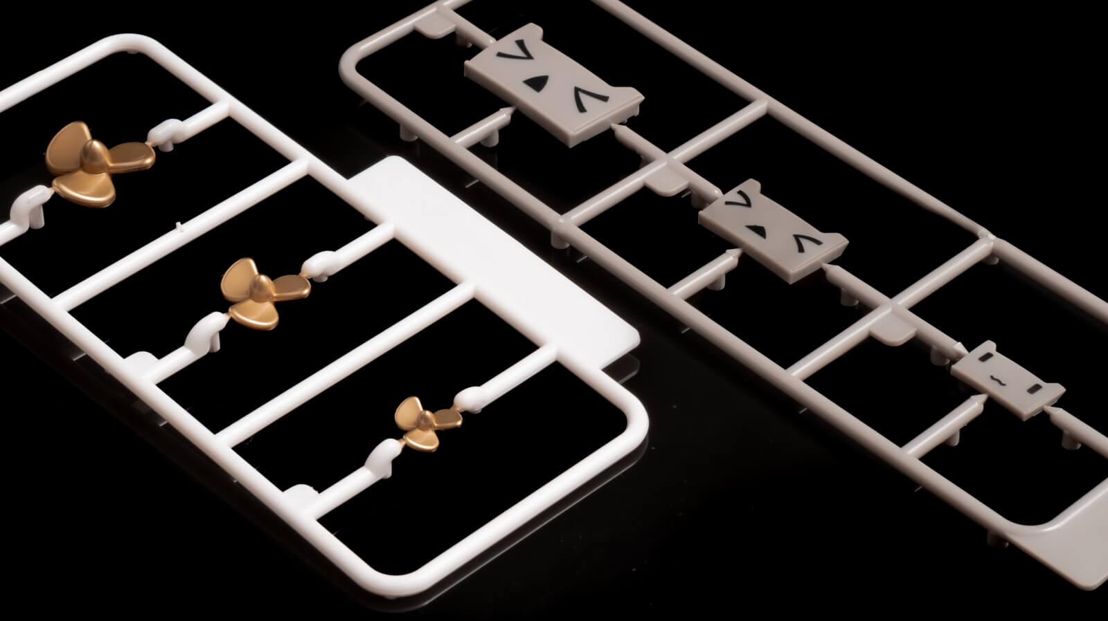 これまた執拗だなと感じさせるのが連装砲ちゃんの顔はプリント済み、スクリューや手旗も塗装済みになっているところです。全体を注意深く見渡すと、組み立ての手数(あるいは金型の数)と細部の色表現のバランスをどのように取るのか細心の注意が払われていることがわかります。