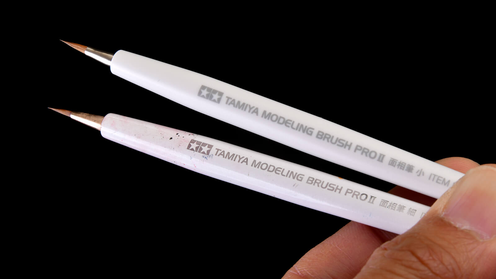 全国の模型店、家電量販店で買えるタミヤの最強筆「タミヤ モデリングブラシPROII」に最高のアップデートが施されました! 持ち手が変わり「転がりにくく」なったのです。最高の塗り心地に加えて、机の上からコロンと落ちたり、転がりながら紙パレットの中に筆が突撃(俺だけかもしれませんが……)なんて事態も起きにくくなります!