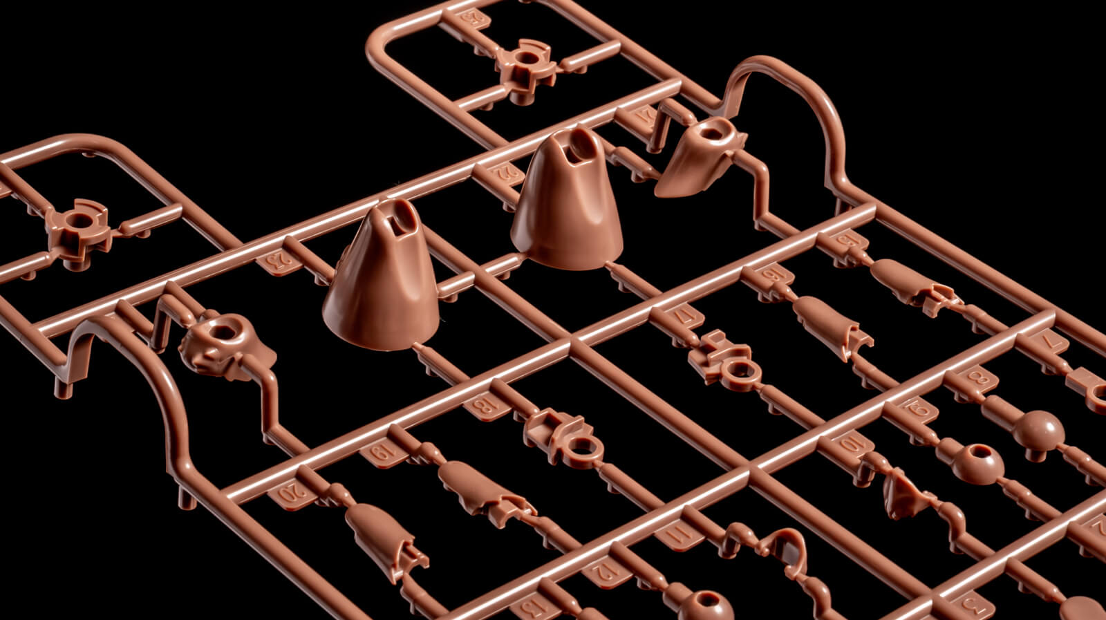 全体の構成は美少女プラモデルのフォーマット(たとえばアオシマは『マクロス』シリーズを題にとったVFGという美少女プラモシリーズを展開しています)に則ったものになっています。各所の関節可動ギミックもごくシンプルなものが組み込まれており、必要最低限のパーツ数で組み上がるよう研ぎ澄まされた構成。言ってしまえば、武装や装甲や、なんなら被服もないヒト型……いや、ヒトのようでヒトでない、ちょっとヒトっぽい何かがスルッと組み上がる素うどん的な存在です。