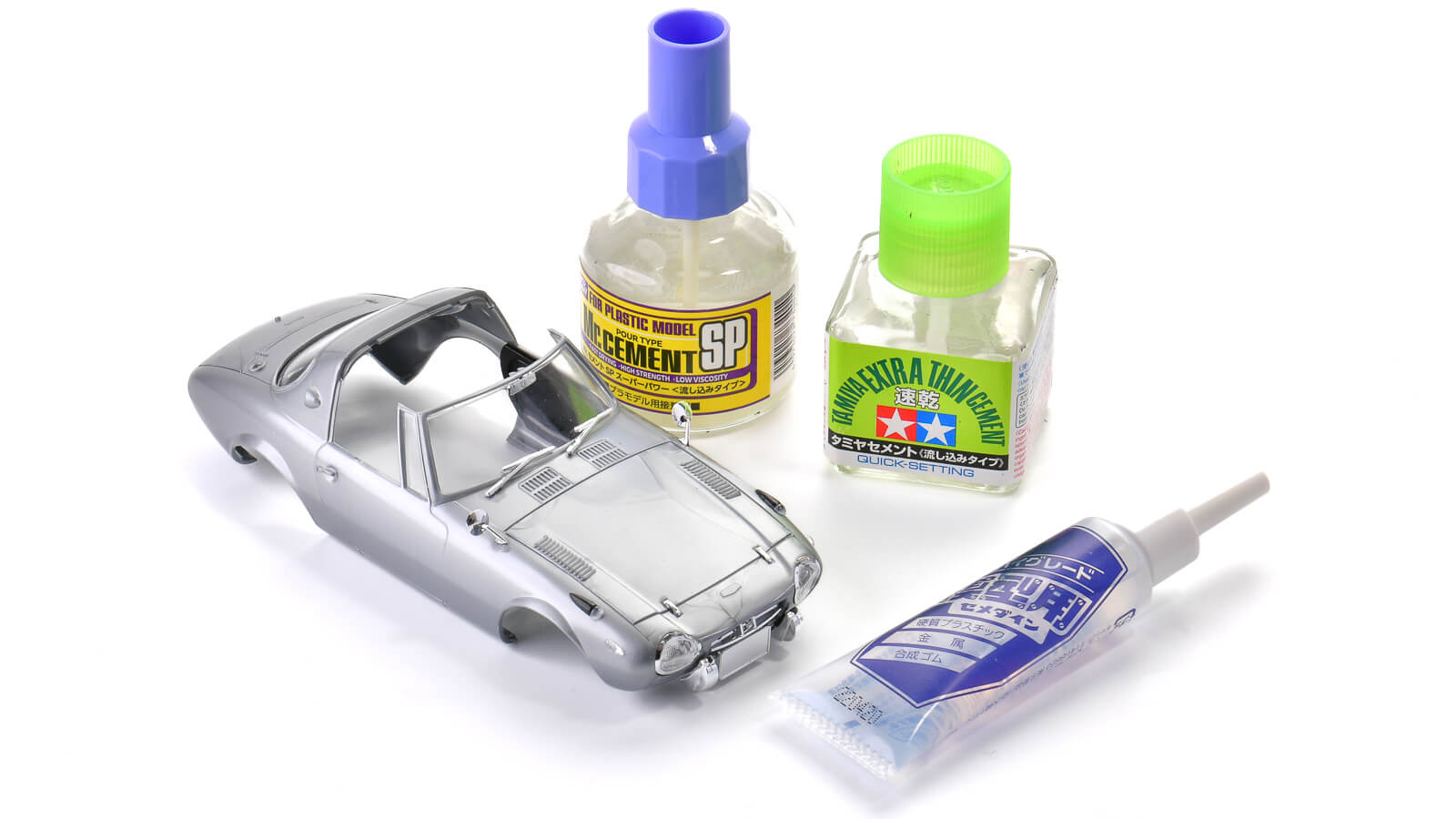 今はメッキパーツやクリアパーツを綺麗に接着できるセメダインの「ハイグレード模型用」や、GSIクレオス・タミヤから発売されている「速乾流し込み接着剤」があります。これらを準備すれば、サクサクと組み上げていけますよ。当時よりも工具の性能が圧倒的に良いというのは、令和に生きる私たちの特権と言えるでしょう。