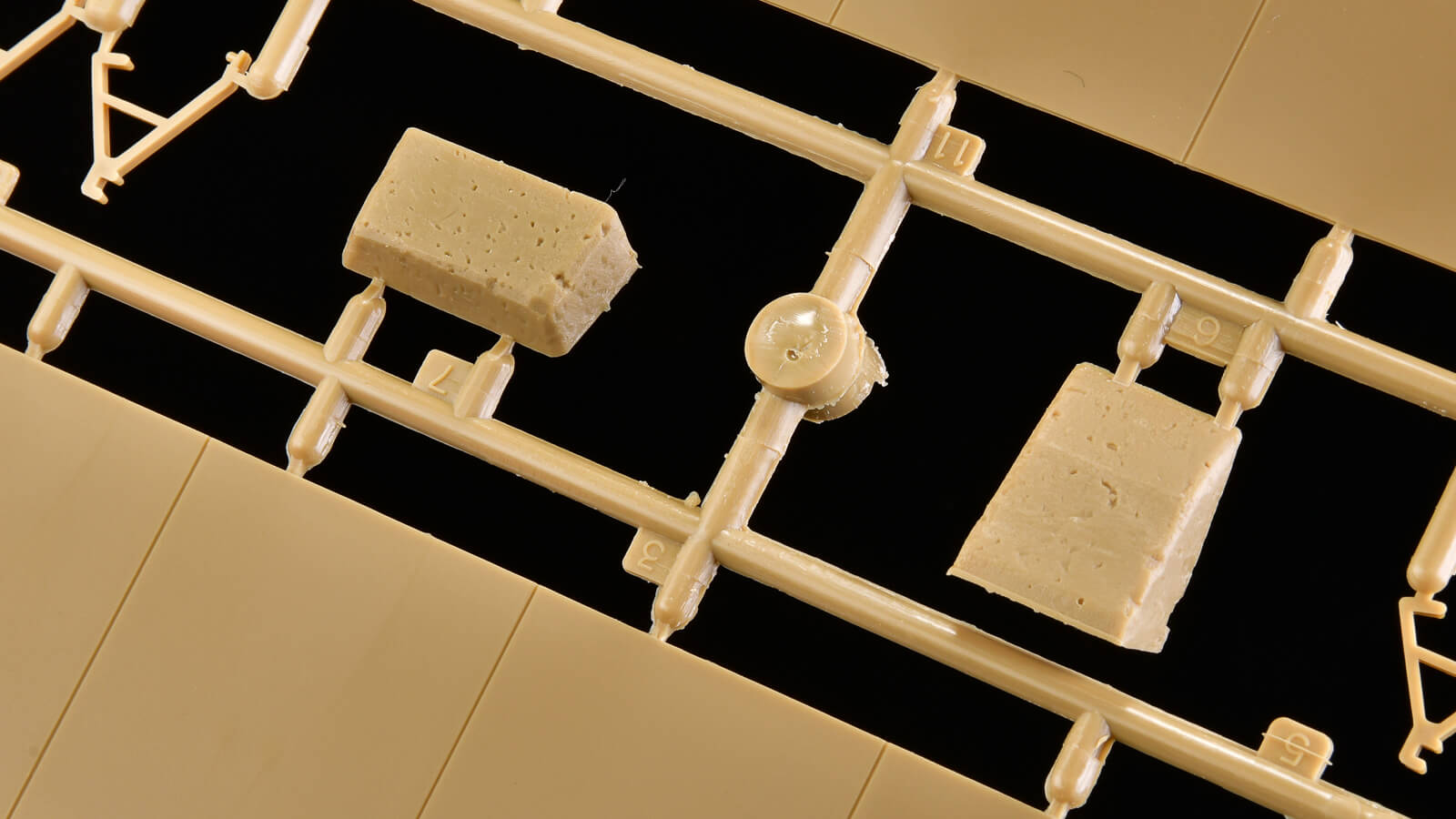 そしてさらに高野豆腐のようなパーツも見どころ。これは増加装甲として装着された「セメントブロック」です。このセメントブロックと通常の装甲板のどちらかを選択式で取り付けます。