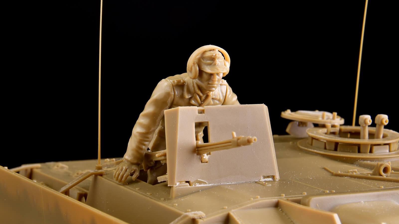 この戦車兵のフィギュアもすごくいい! 両手を力強く広げて、車体から体を出している勇ましい姿……数々の戦車模型ファンに愛されてきたアニキなのです。