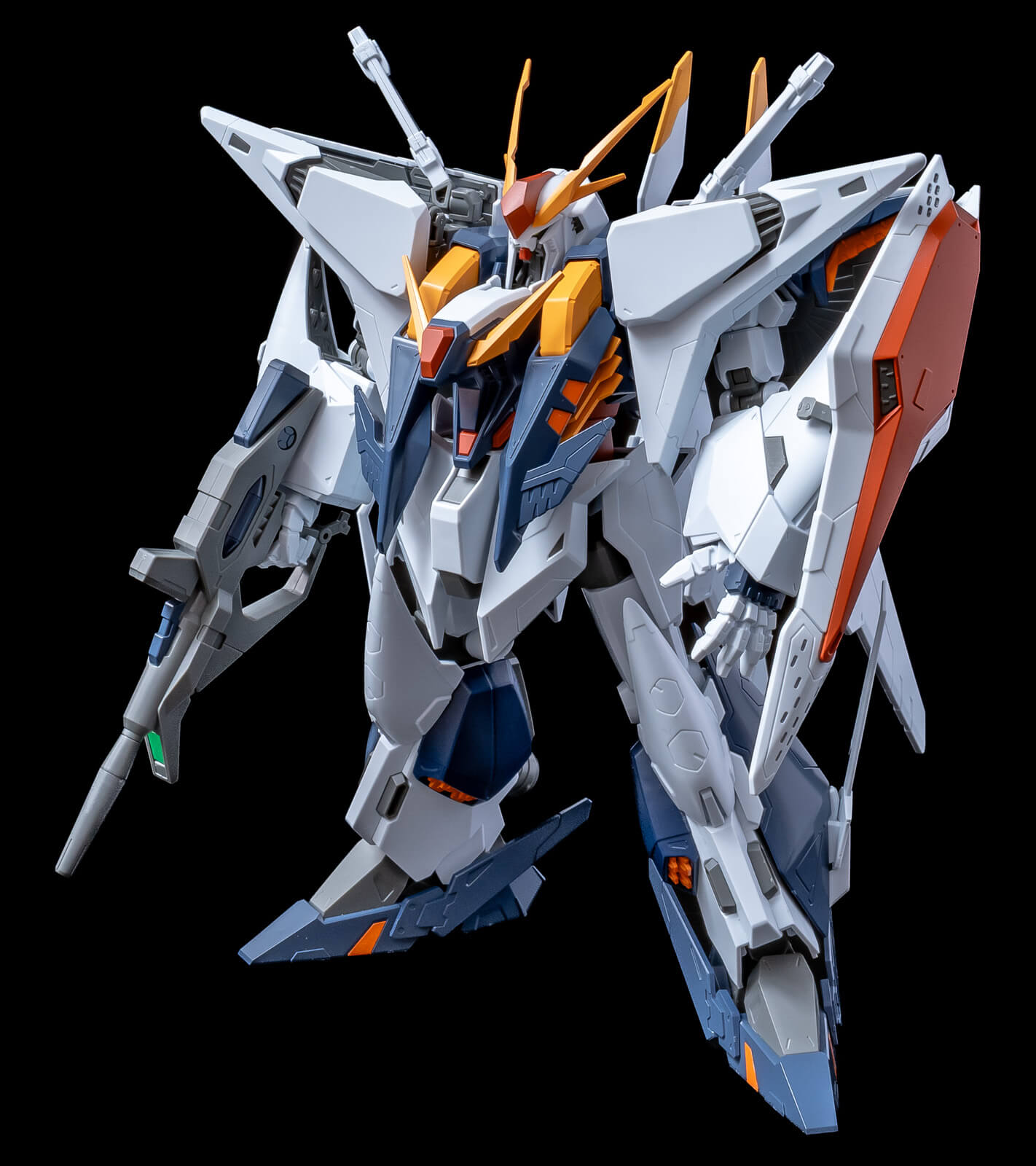 こうして立たせてみるとパネルラインごとにもう少し違うトーンのライトグレーを足したいぞ……とか、やっぱり白いパーツにはバキッとスミ入れをしたいぞ……とか、デカールを貼ってつや消しトップコートをしたらもっと映えるぞ……みたいなことがわかります(そしてそれぞれをどこにどれくらい追加すると効果的に見えるのかも全体像があるからこそイメージしやすい!)。そしたら2度目の完成に向けてまたバラせるのがガンプラのいいところ。
