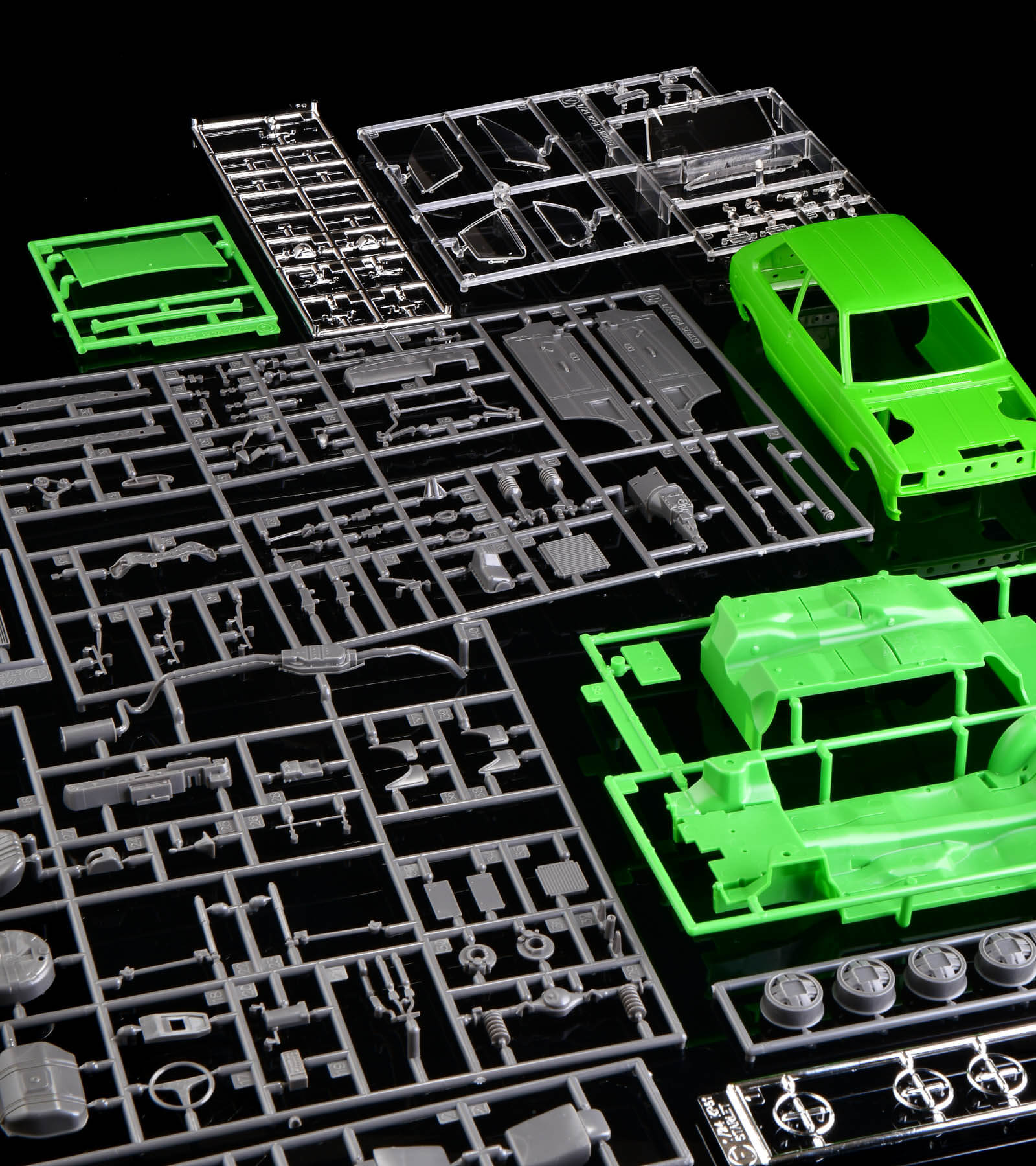 シャシーの裏や、インテリアの床面のディテールへのこだわりが人一倍強いハセガワ。スターレットも健在で、ディテールや豊かな隆起など見所満載。完成するとひっくり返したりしないと見えない部分ではありますが、実車の魅力を細部までお届けしたい! という気持ちがこういう所からも伝わってきます。