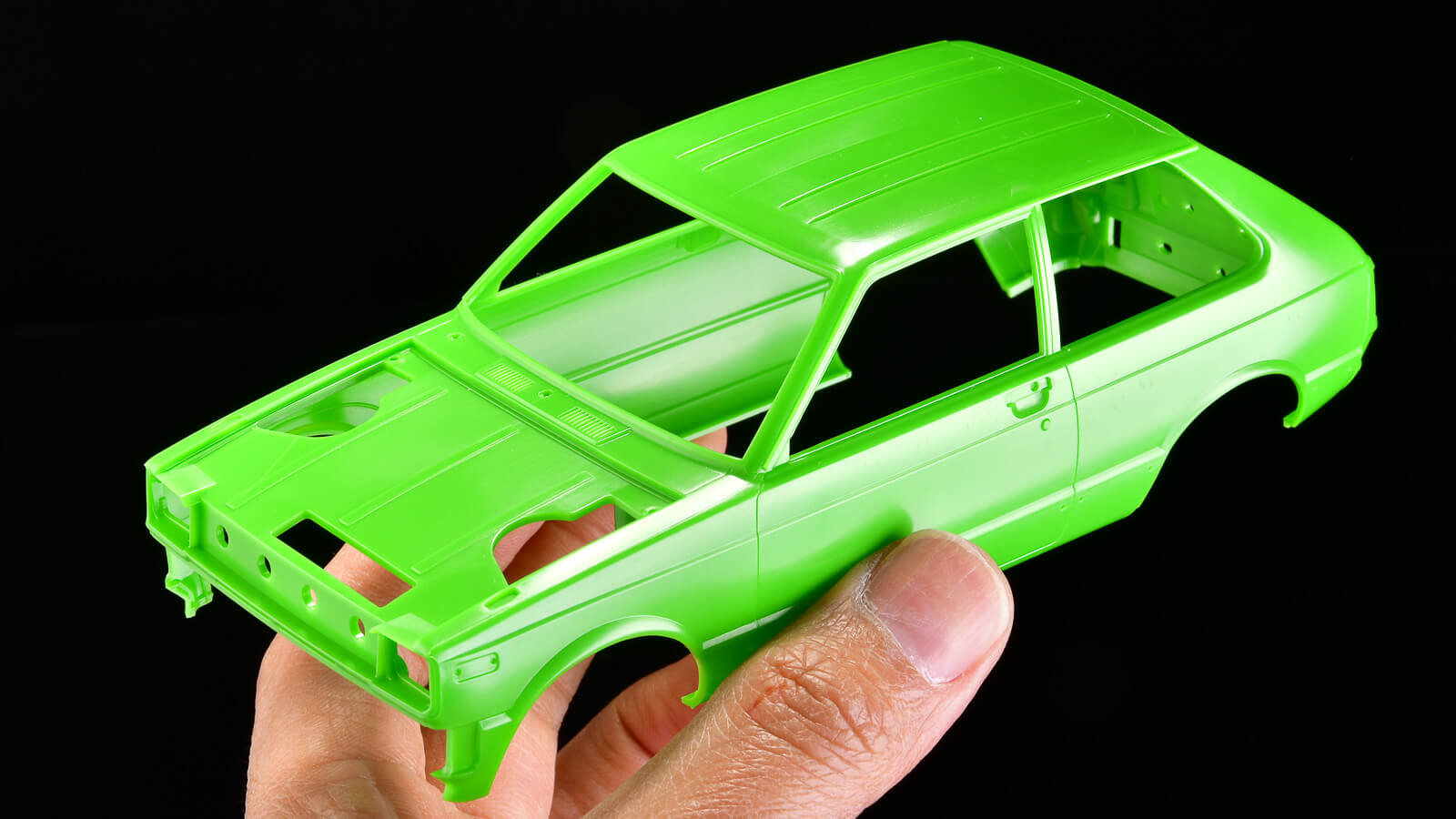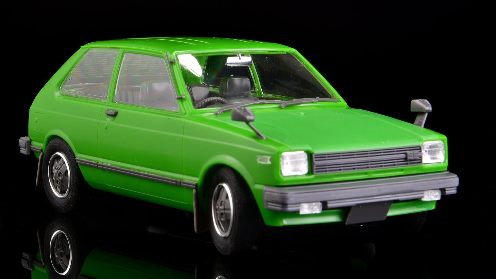 そんなプラモラブな気持ちに包まれながら模型店に行って買った車模型がこちら。「ハセガワ 1/24 トヨタ スターレット KP61」です。この緑の車体と、中のレトロなシートの雰囲気がとっても可愛くてゲットしたのでした。