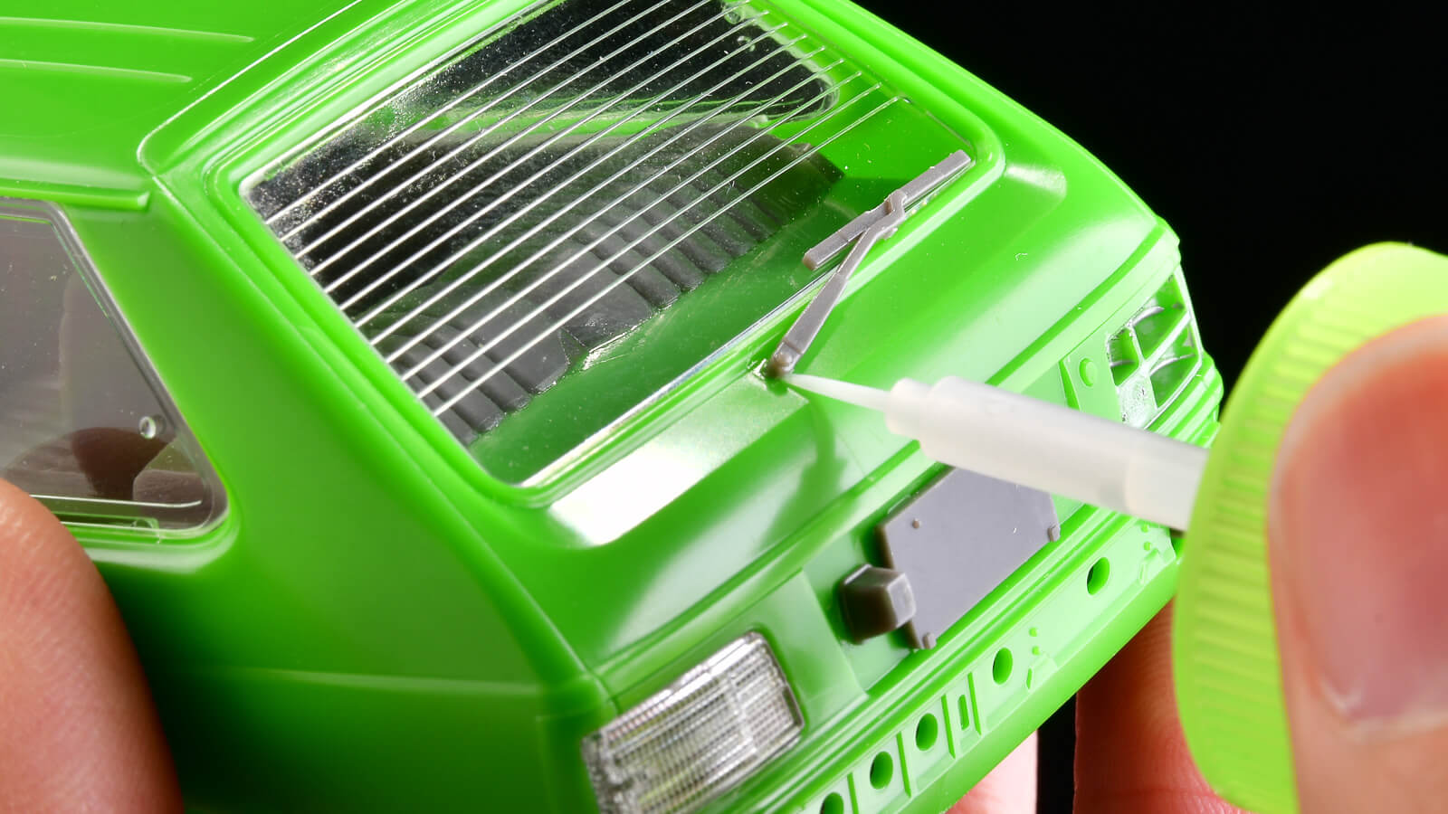 地味に嬉しいのがワイパーの取り付け位置がとっても明確なこと。取り付け穴が深めに彫られているので、ワイパーが定位置に決まりやすいです。ワイパーって塗装後に接着する時にいつも神経を使っていたので、このくらいバッチリ決まってくれるのは本当に嬉しいです。