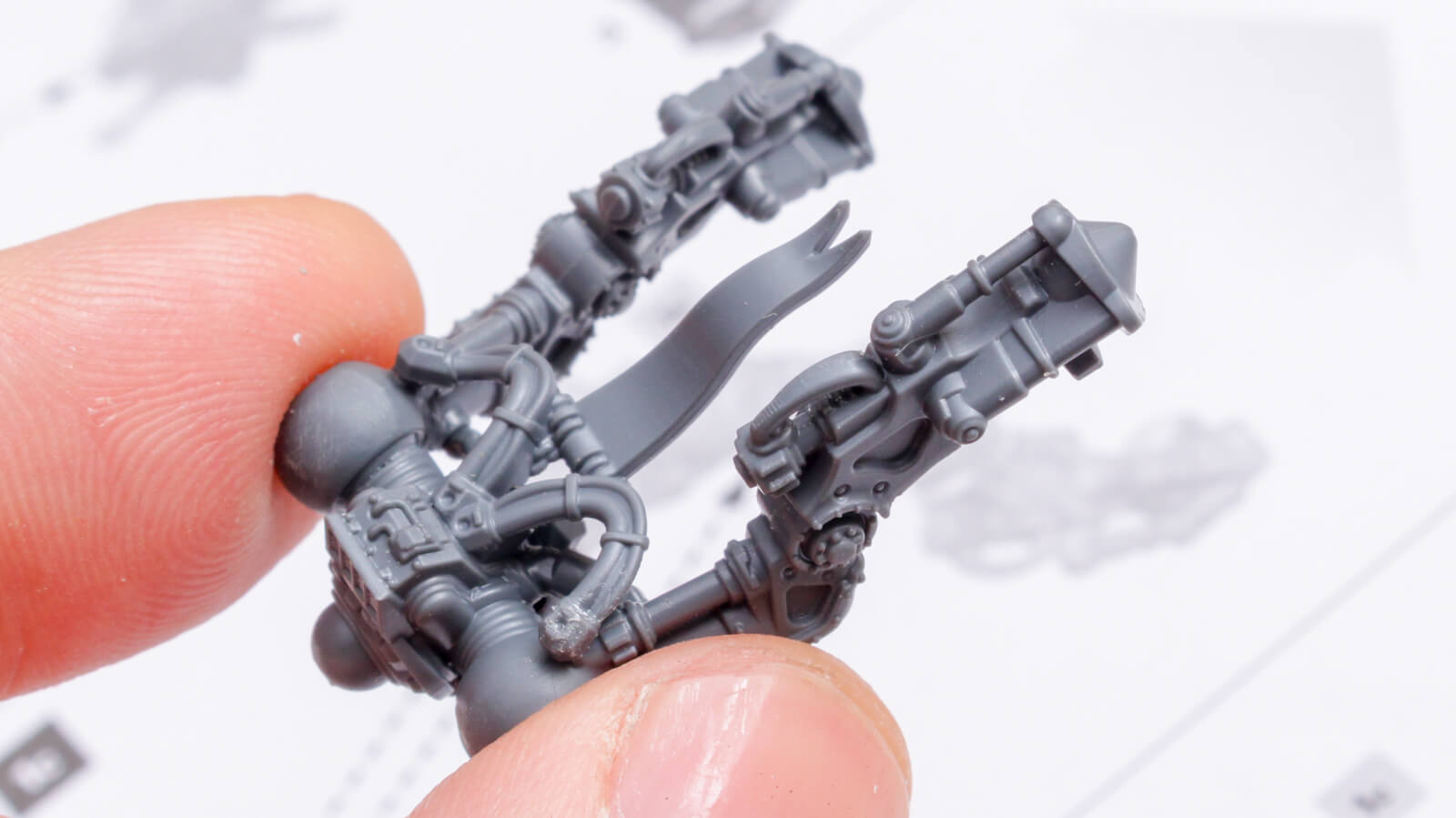 番号順という配慮のおかげで、二体を並行して作ることへの腰の重さを感じさせないのが面白い。顔のパーツなど、要所要所で選べる部分も、その軽快なリズムのなかで楽しく選ぶことができた。そもそも高精度のパーツの合いと、面白い分割でプラモデルとしての独自性を発揮しているウォーハンマー製品だけれども、パーツ探しの手間を極力排除しているものに出会うのは今回が初めてだった。