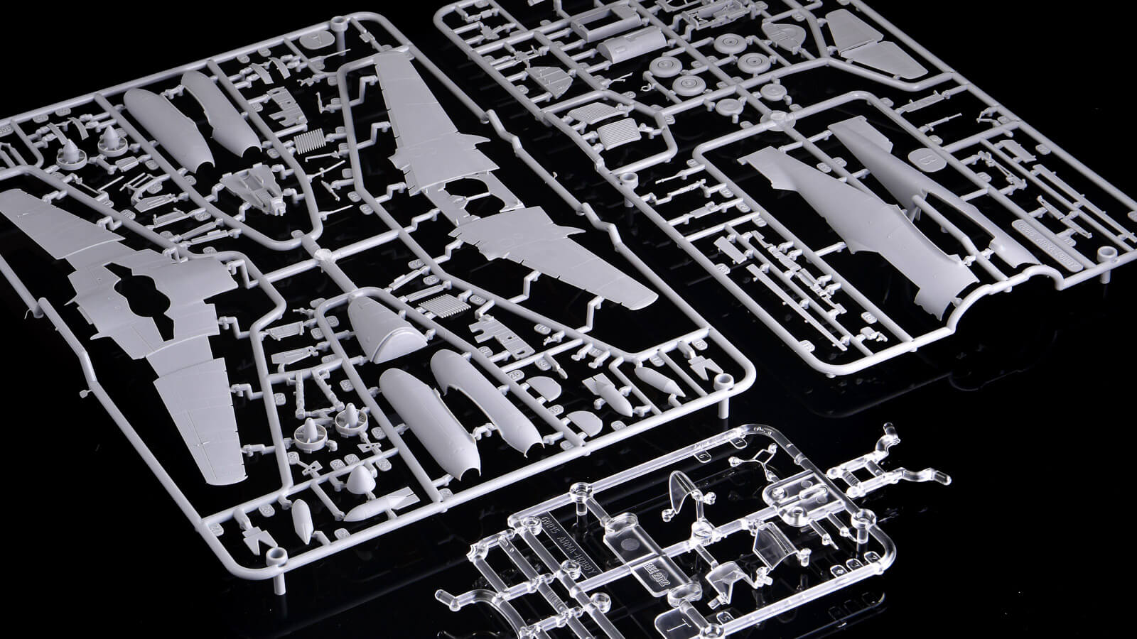 このランナーを見てください。まるで図鑑の分解図のような美しさ。Me262を構成するパーツたちが綺麗に配置されています。これを見ているだけでワクワクしますね〜〜。