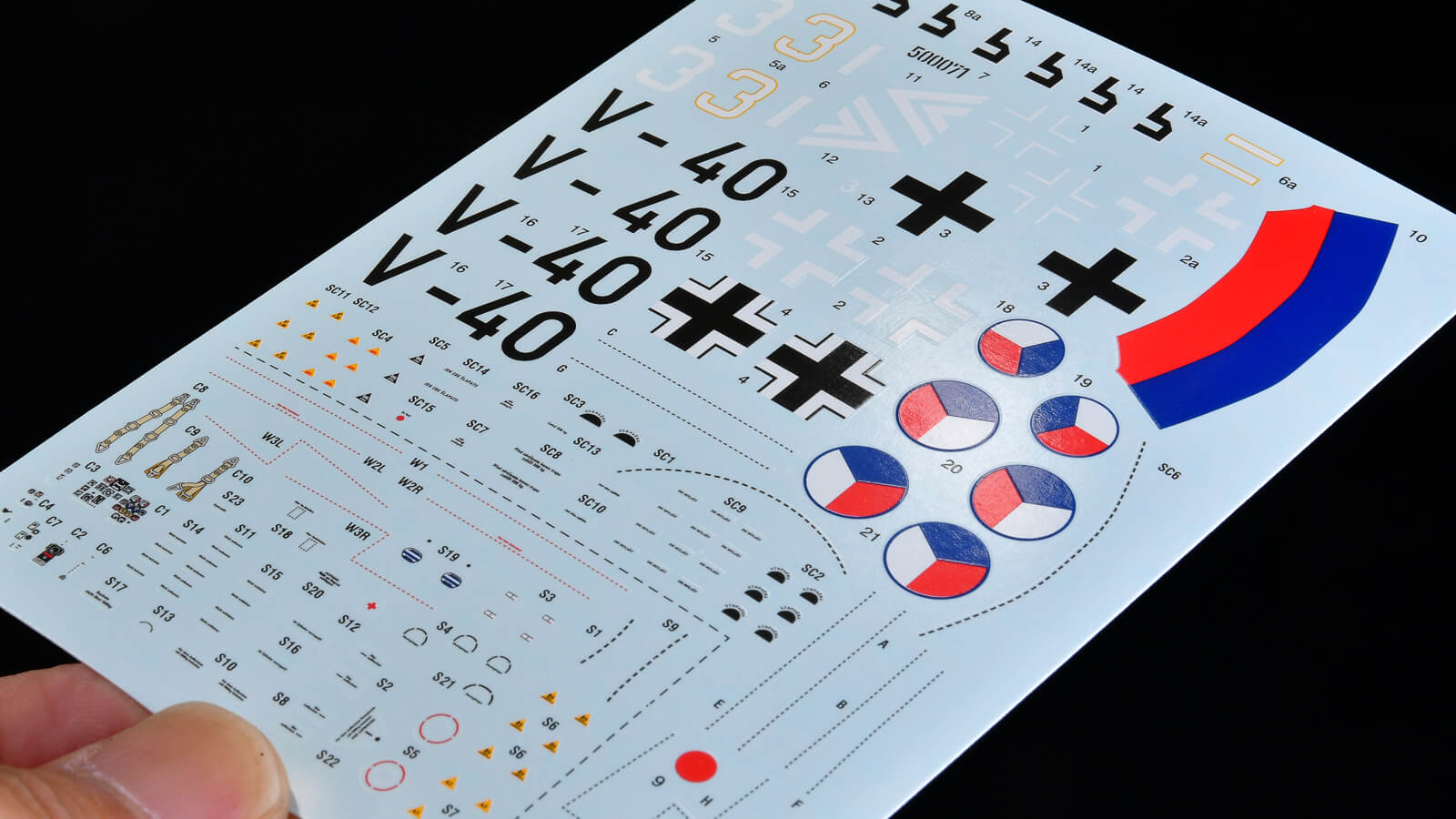 デカールはイタリアの高品質デカールメーカー・カルトグラフ製によるもの。さらにカット済みのマスキングテープが付属するので、細かな塗り分けも怖くありません。