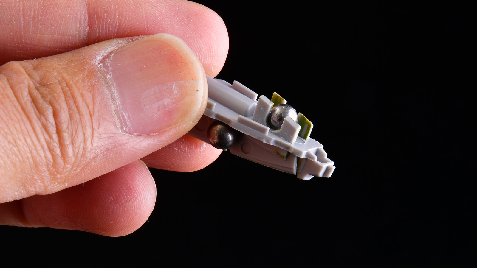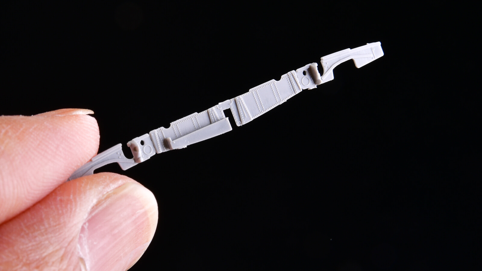実はこれ、両サイドに折れ線が用意されていて、自分で曲げて形状を作る設計になっています。プラスチック特有の粘りを活かして、やさしく曲げてあげれば、薄く精密な内壁が完成。組み上げてしまうとほとんど見えなくなってしまう部分なのですが……こういうこだわりこそが、僕らモデラーの心を刺激してくれる楽しいポイントなのです。