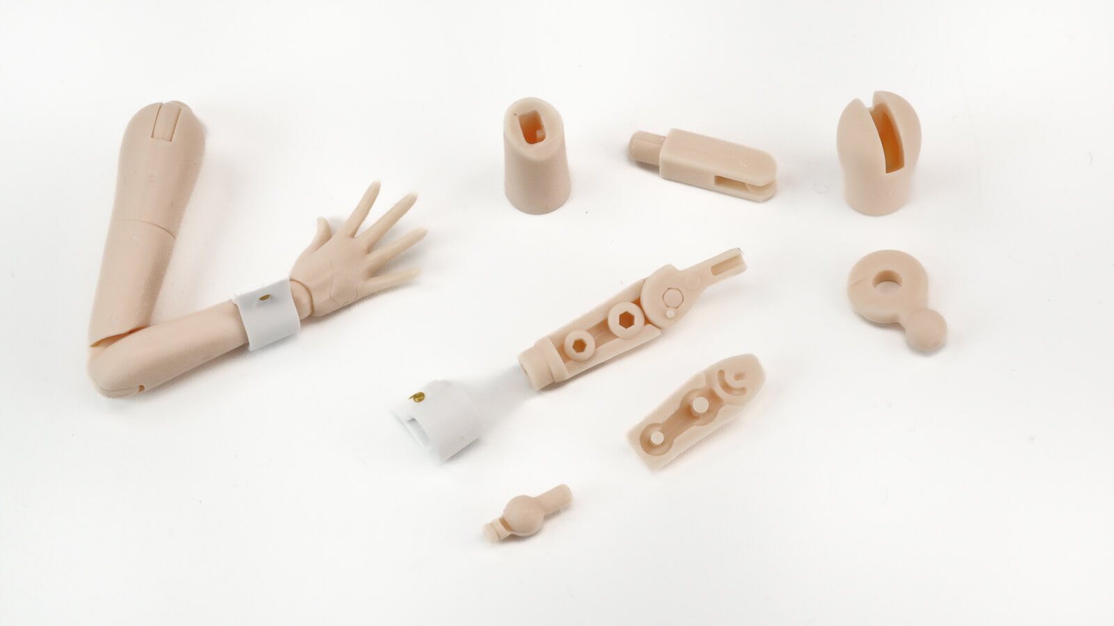 腕の分割もちょっとおもしろくて、上腕はインナーをかぶせて可動部をはめる、合わせ目が出ない方式。前腕は肘関節に出っ張りがあって、曲げる範囲を制限しています。